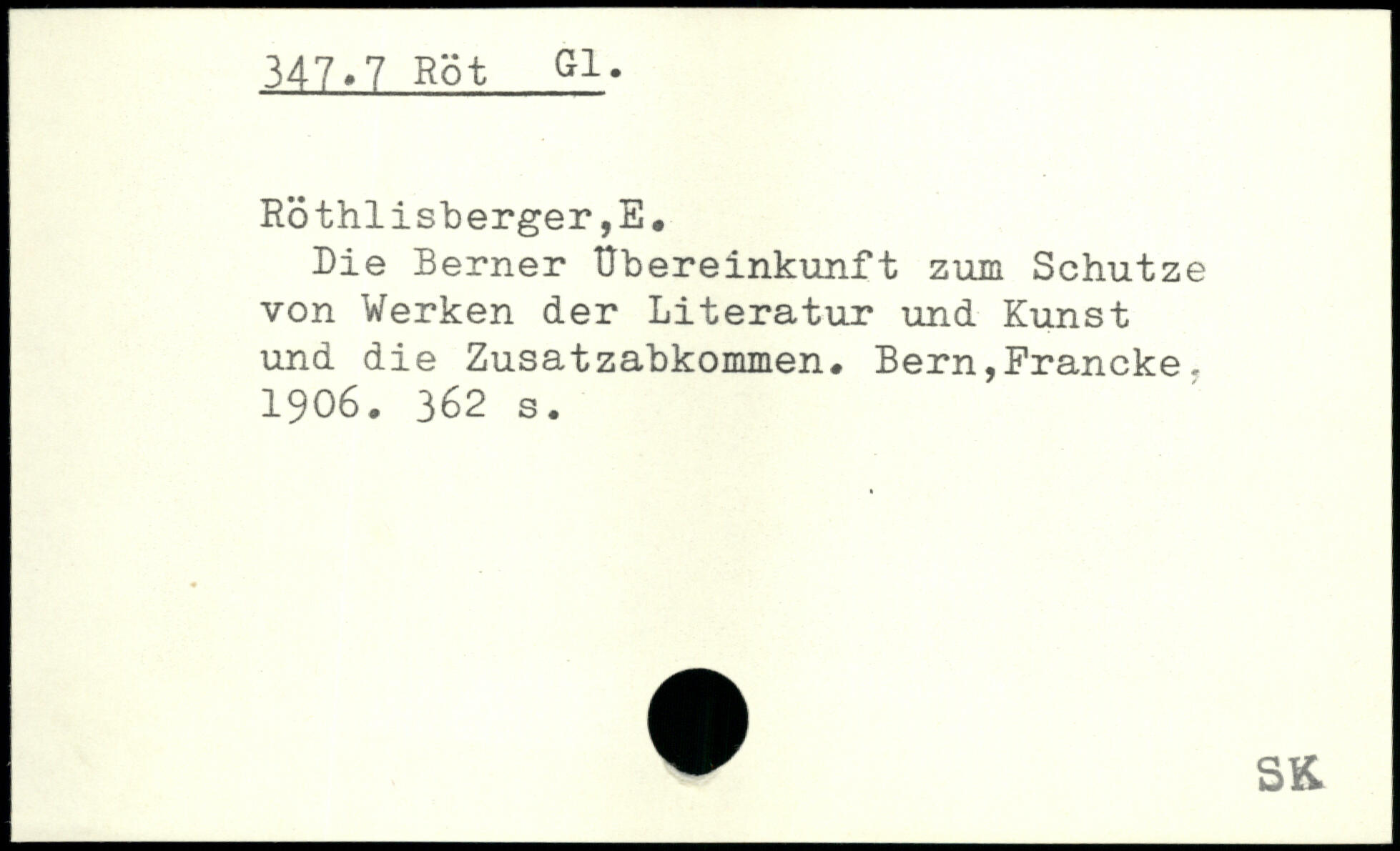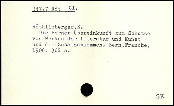 Die Berner Übereinkunft zum Schutze von Werken der Literatur und Kunst und die Zusatzabkommen. Bern,Francke. 1906.