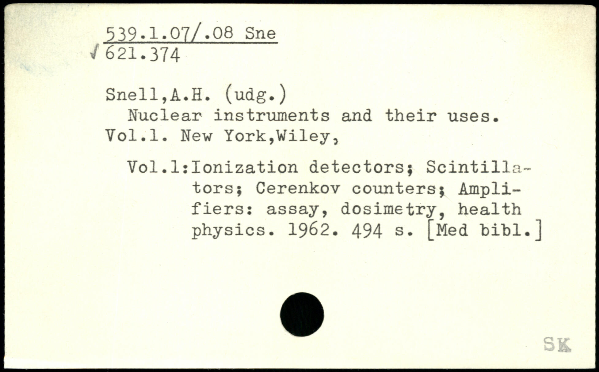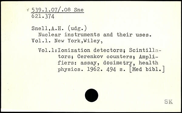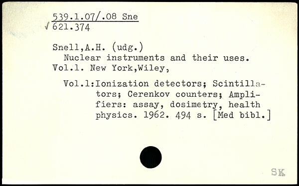 Nuclear instruments and their uses. Yol.l. New York,Wiley, Vol.lilonization detectors; Scintillators; Cerenkov counters; Amplifiers: assay, dosimetry, health physics. 1962.