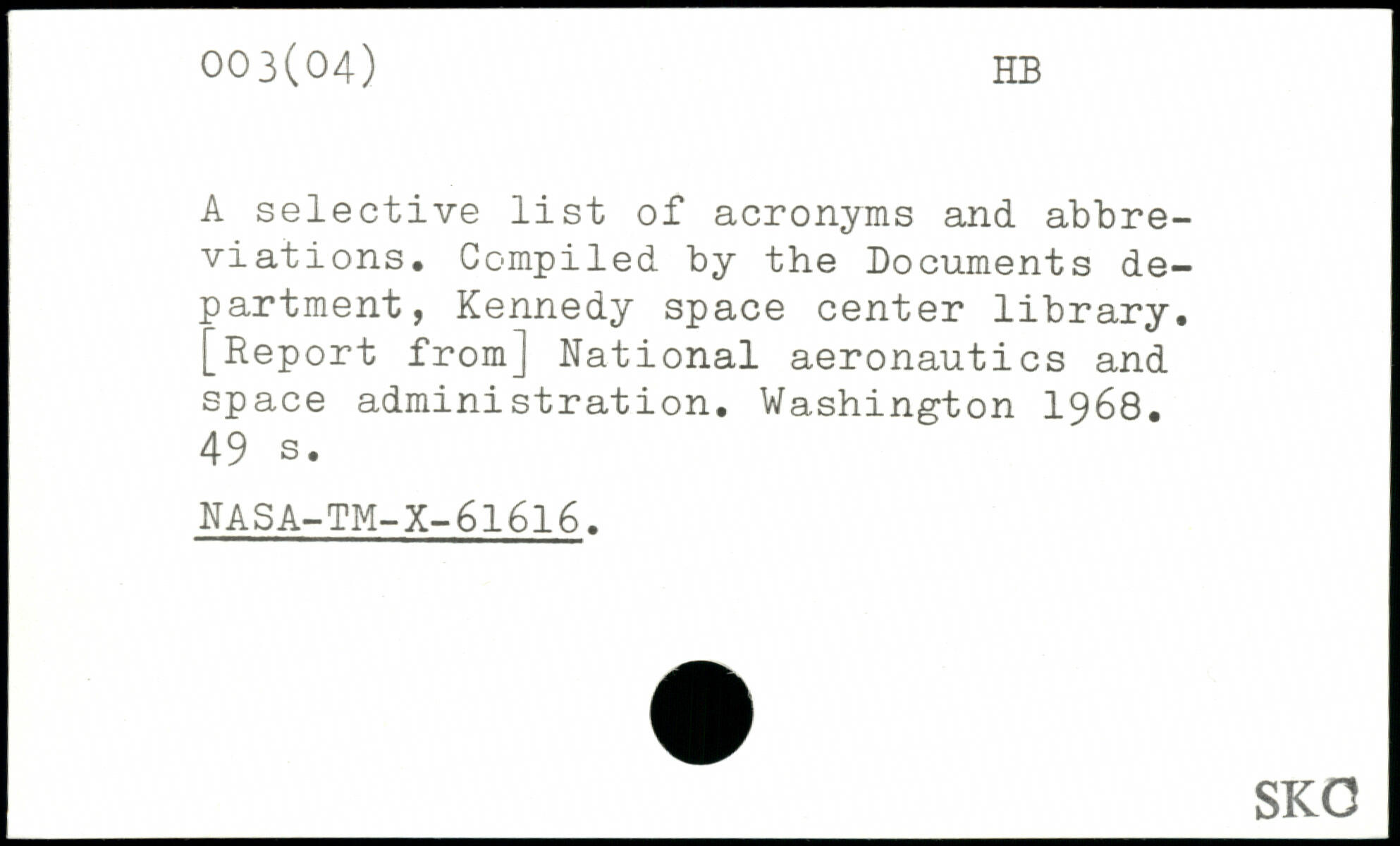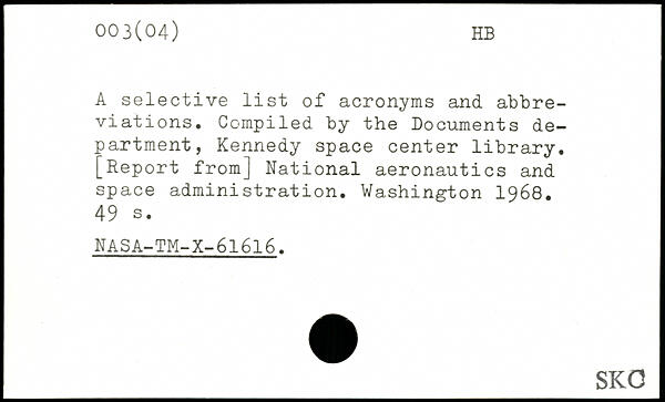 A selective list of acronyms and abbreviations. Compiled by the Documents department, Kennedy space center library.