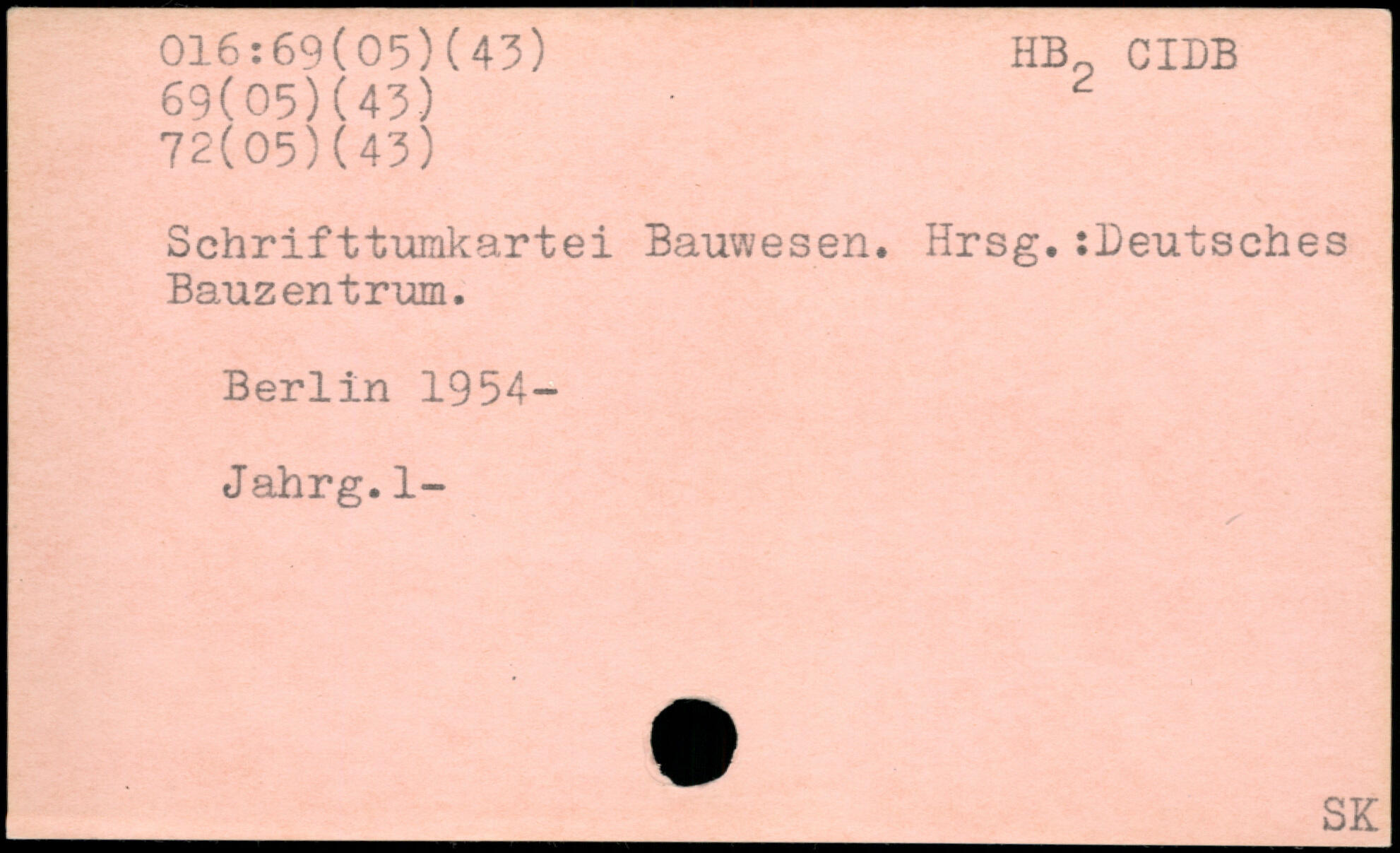 Schrifttumkartei Bauwesen. Hrsg. îDeutsches Bauz en t rum.