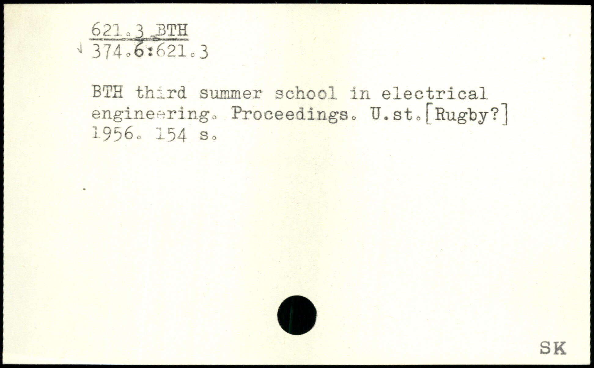 BTH third summer school in electrical engineering;, Proceedingso U.st,[Rugby?] 1956o
