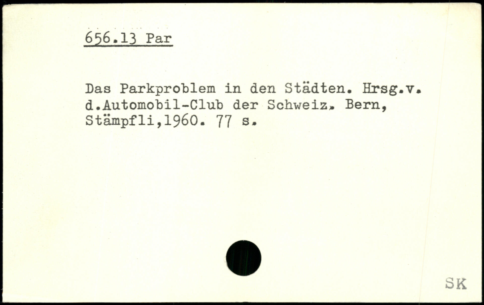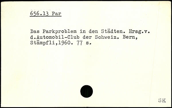 Las Parkprohlem in den Städten. Hrsg.v. d.Automobil-Club der Schweiz.