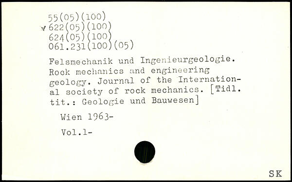 Rock mechanics and engineering geology. Journal of the International society of rock mechanics. [Tidl. tit.: Geologie und Bauwesen] Wien 196 3— Vol.l-