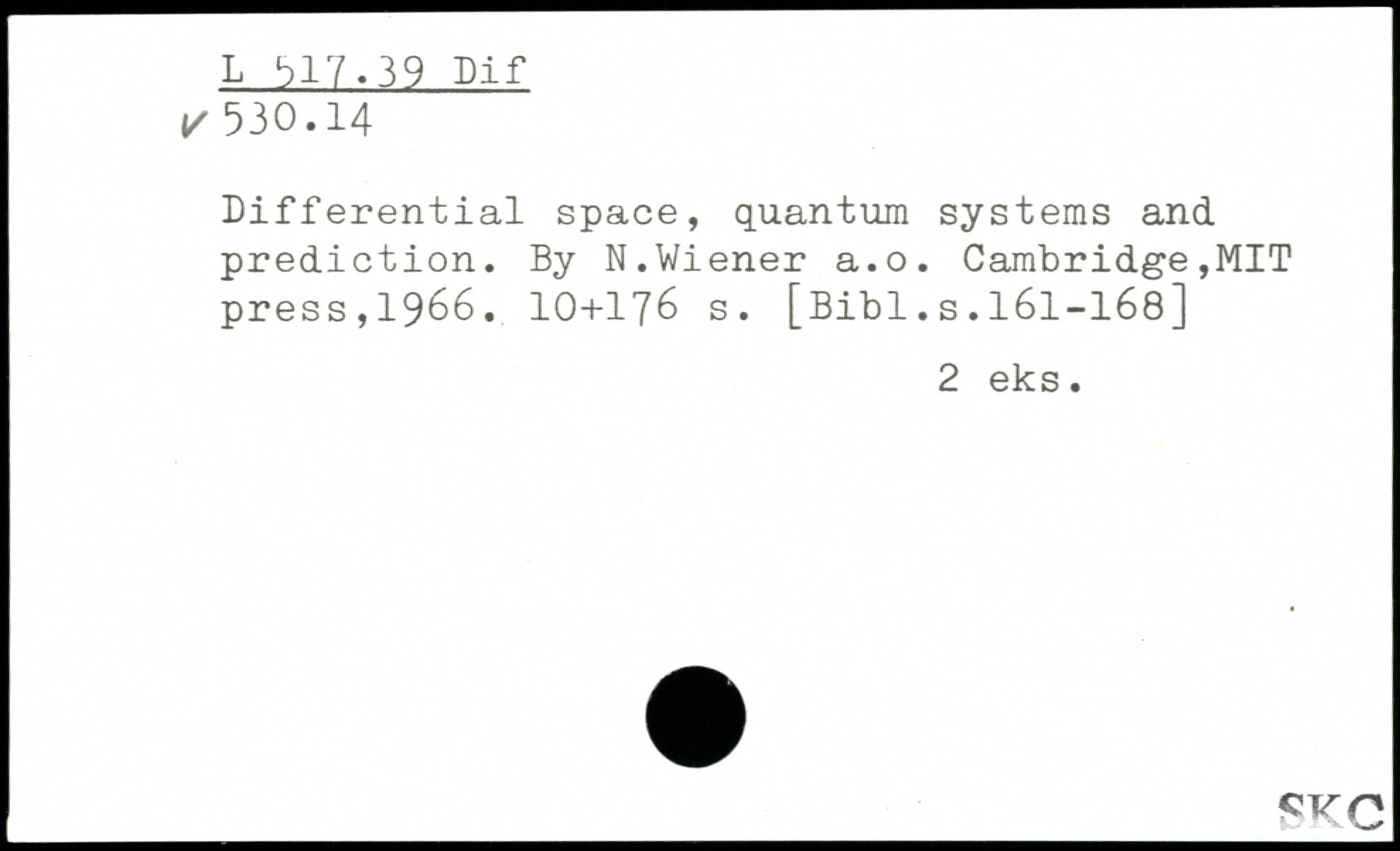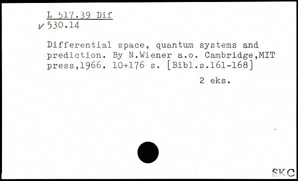 Differential space, quantum systems and prediction. By N.Wiener a.o.