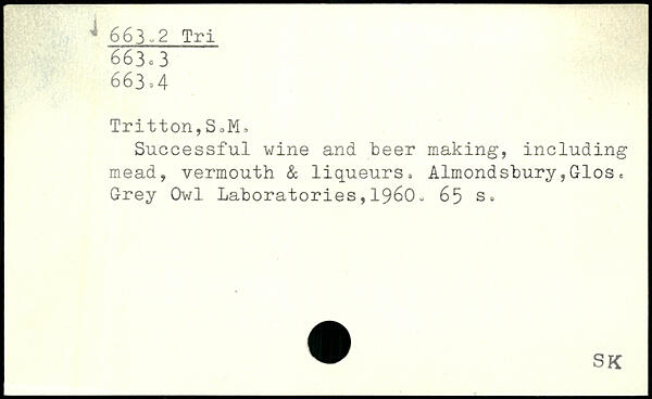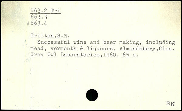 Tritton,SoM> Successful wine and beer making, including mead, vermouth & liqueurs.