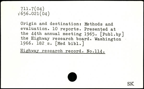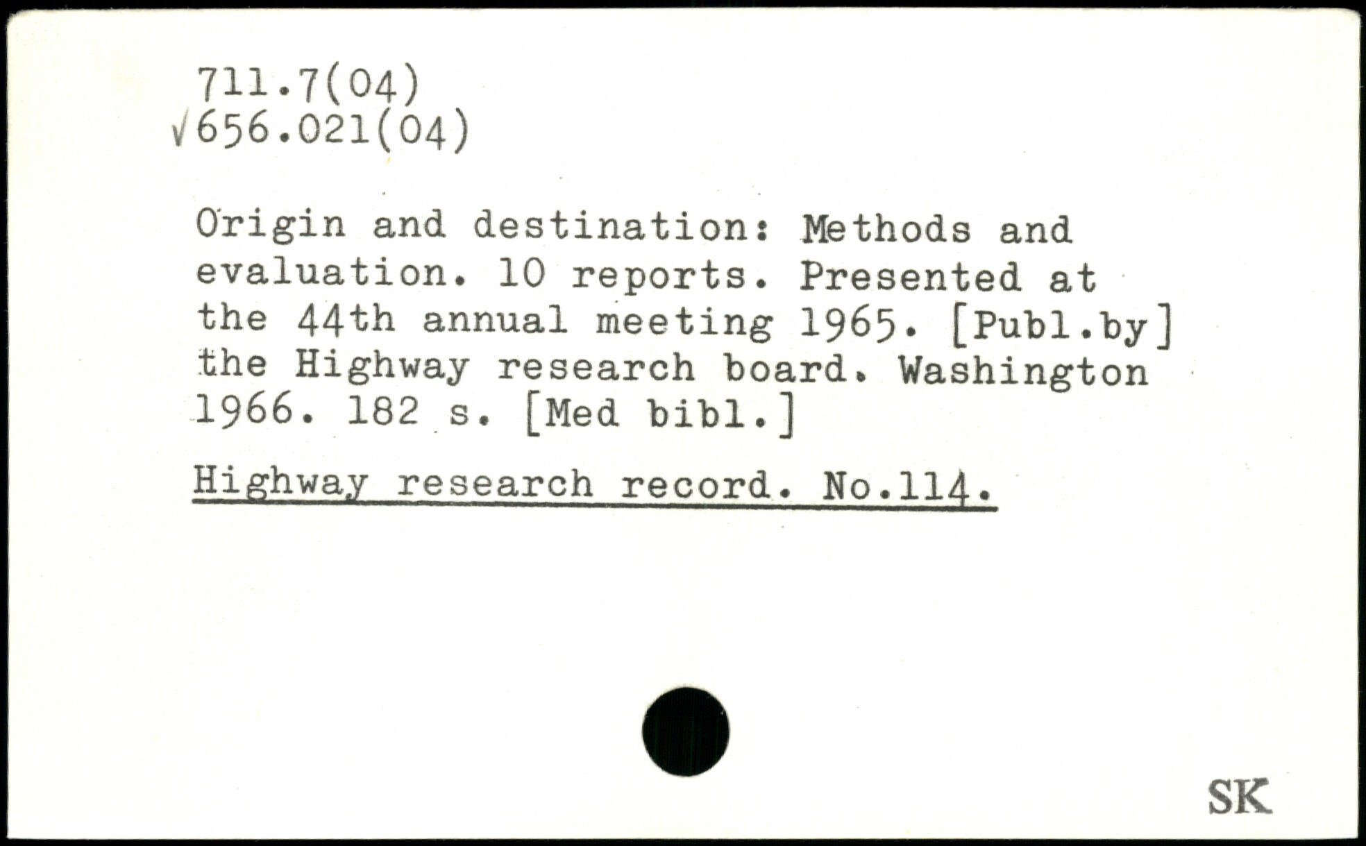 Origin and destination: Methods and evaluation. 10 reports. Presented at the 44th annual meeting 1965
