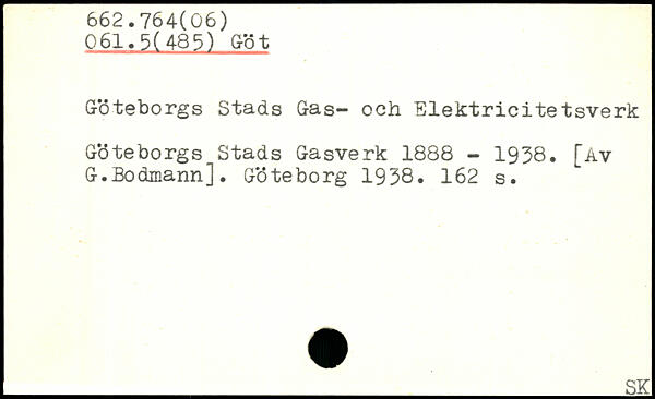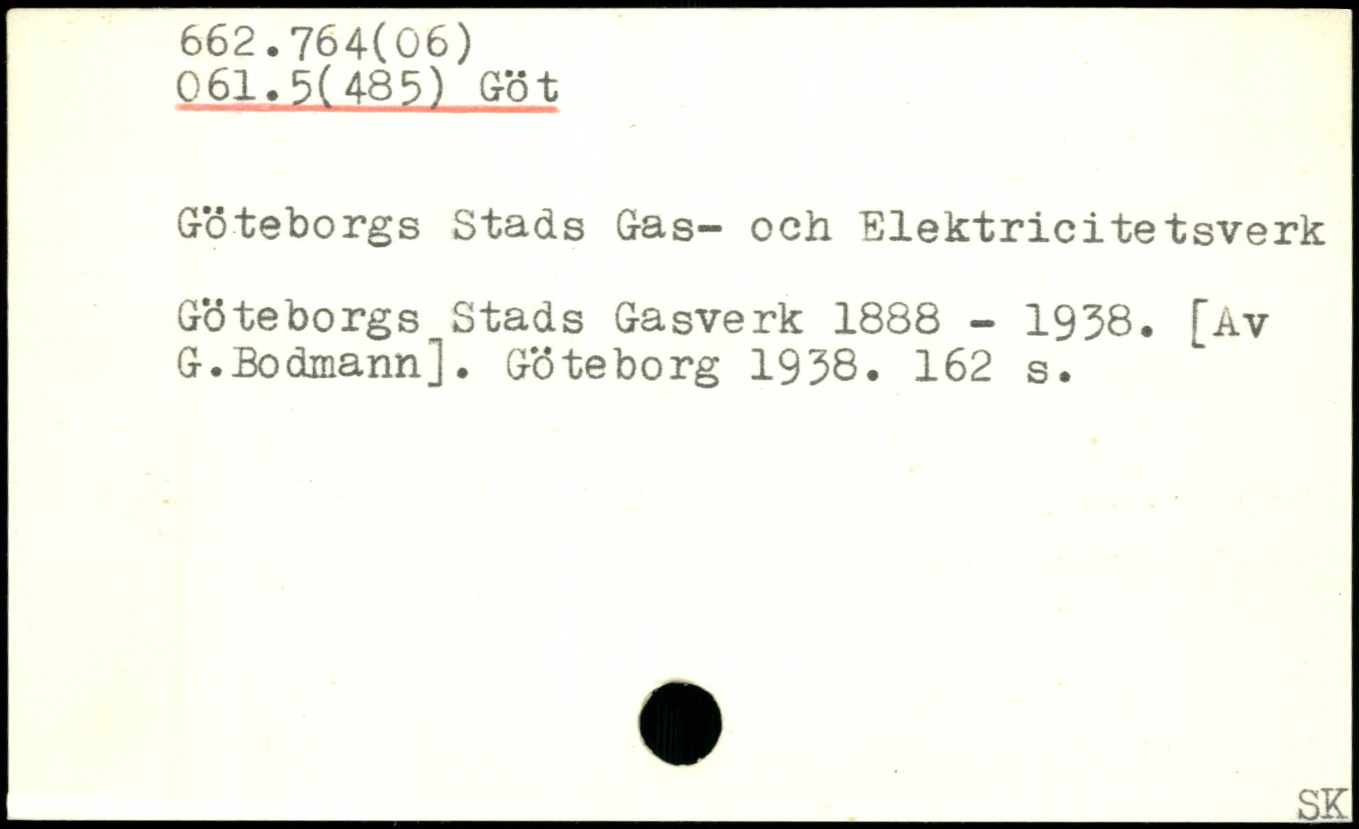 Göteborgs Stads Gas- och Elektricitetsverk Göteborgs Stads Gasverk 1888 - 1938. [Av G.Bodmann]. Göteborg 1938.