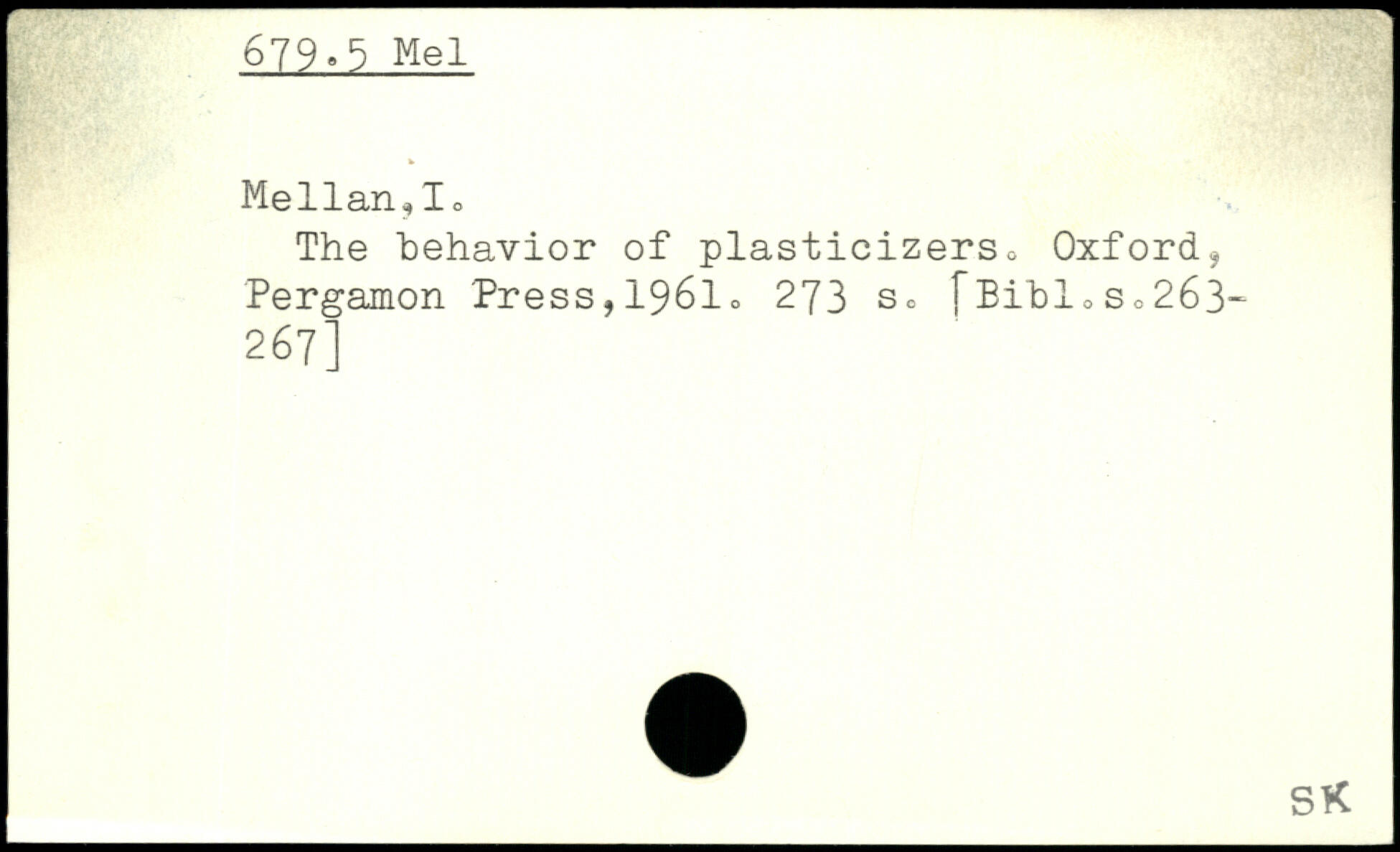 The behavior of plasticizers, Oxford, Pergamon Press,1961, 273 s. fBiblos<>263-267]