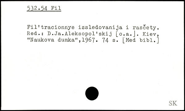 Fil1tracionnye issledovanija i rascety. Red.: D.Ja.Aleksopol'skij [o.a.J. Kiev, "Naukova dumkaM,1967.