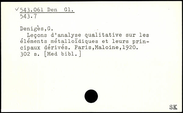 Leçons d'analyse qualitative sur les éléments métalloïdiques et leurs principaux dérivés.