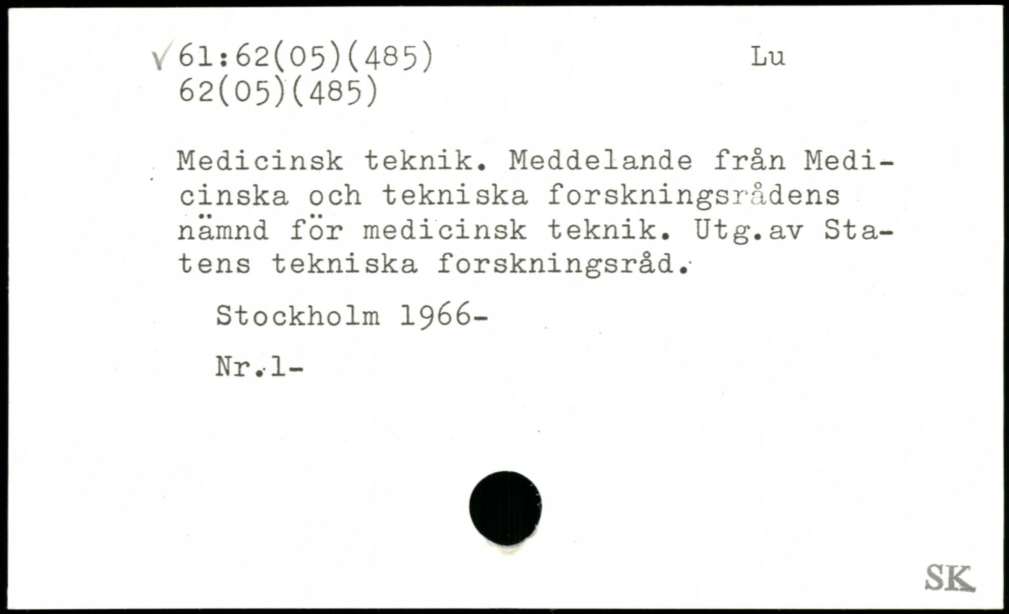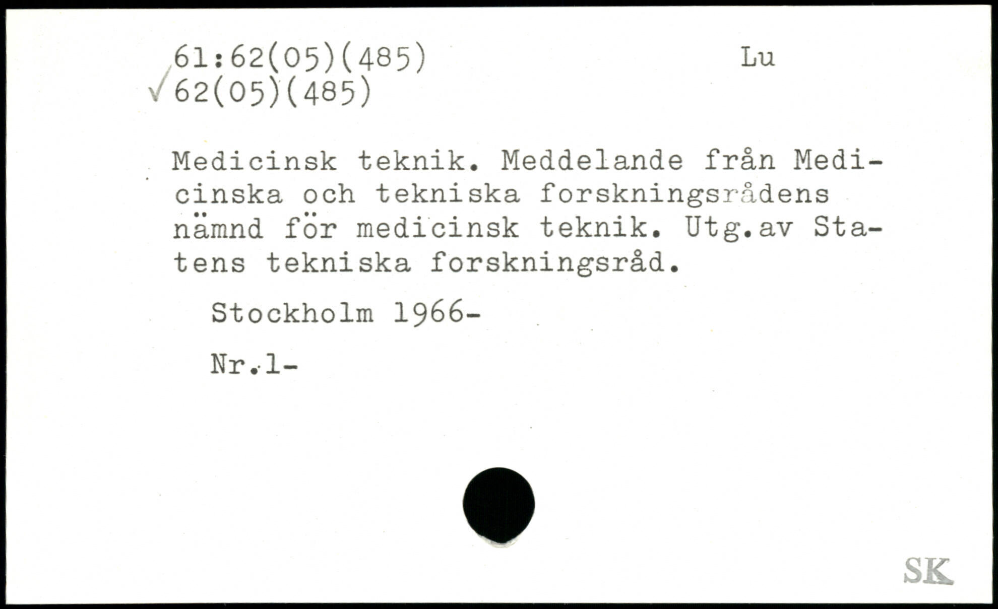 Medicinsk teknik. Meddelande från Medicinska och tekniska forskningsrådens nämnd för medicinsk teknik. Utg.av Statens tekniska forskningsråd.