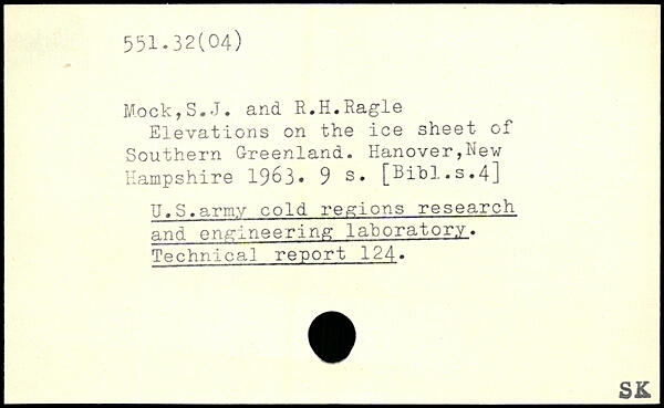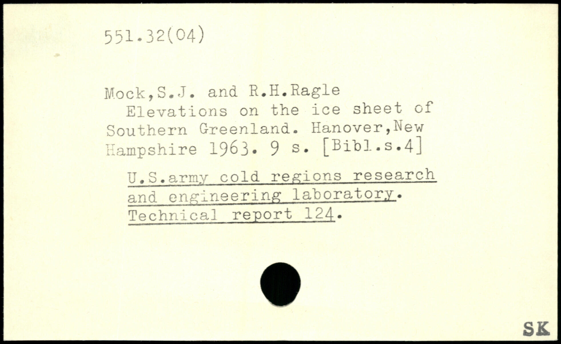 Elevations on the ice sheet of Southern Greenland. Hanover,New Hampshire 1963