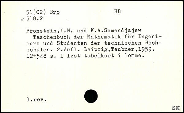 Forfatter: I.N. Bronstein, K.A. Semendjajew