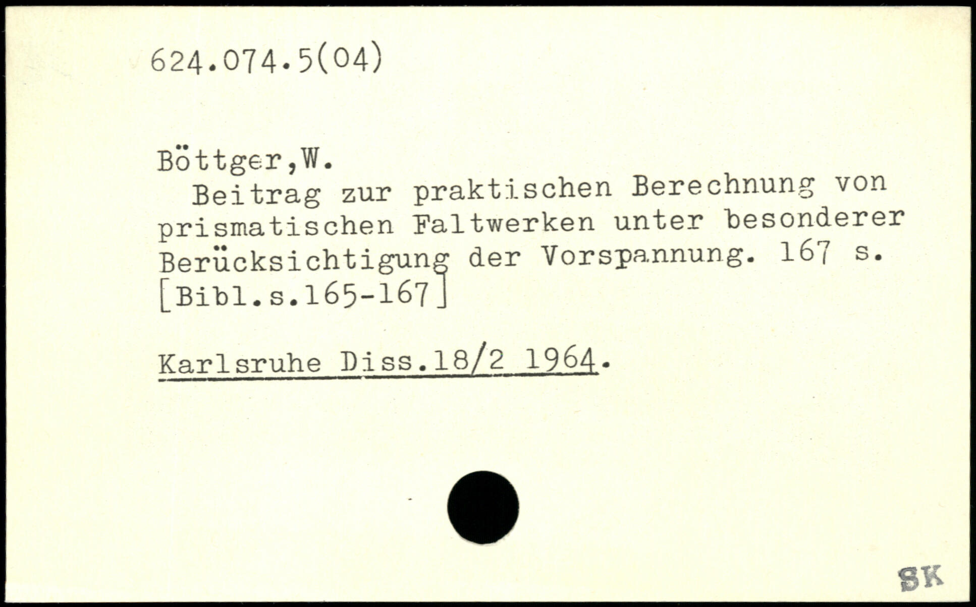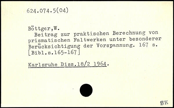 Beitrag zur praktischen Berechnung von prismatischen Faltwerken unter Besonderer Berücksichtigung der Vorspannung. 16? s. [Bihl.s.165-167J Karlsruhe Biss.18/2 1964