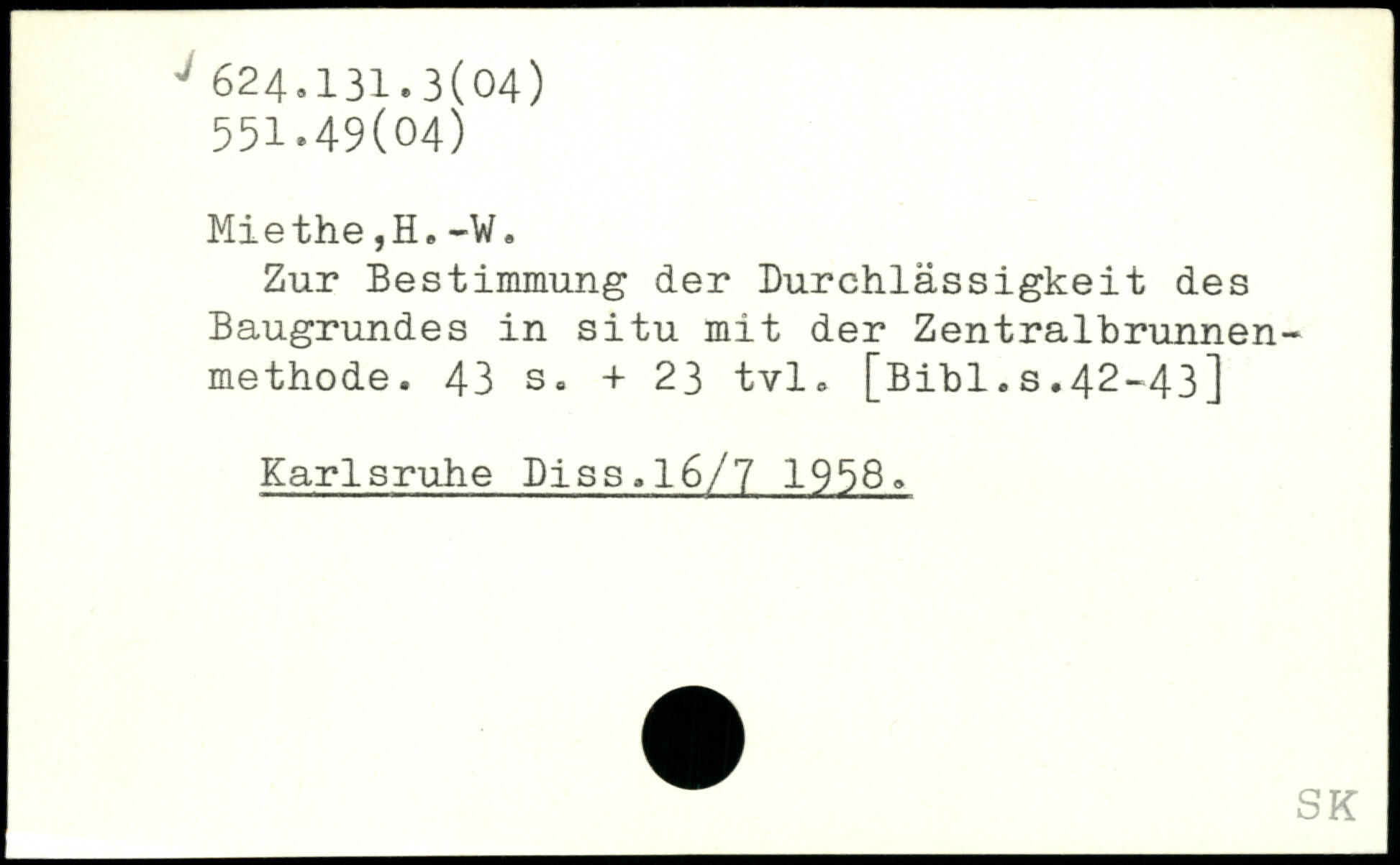 Zur Bestimmung der Durchlässigkeit des Baugrundes in situ mit der Zentralbrunnenmethode.