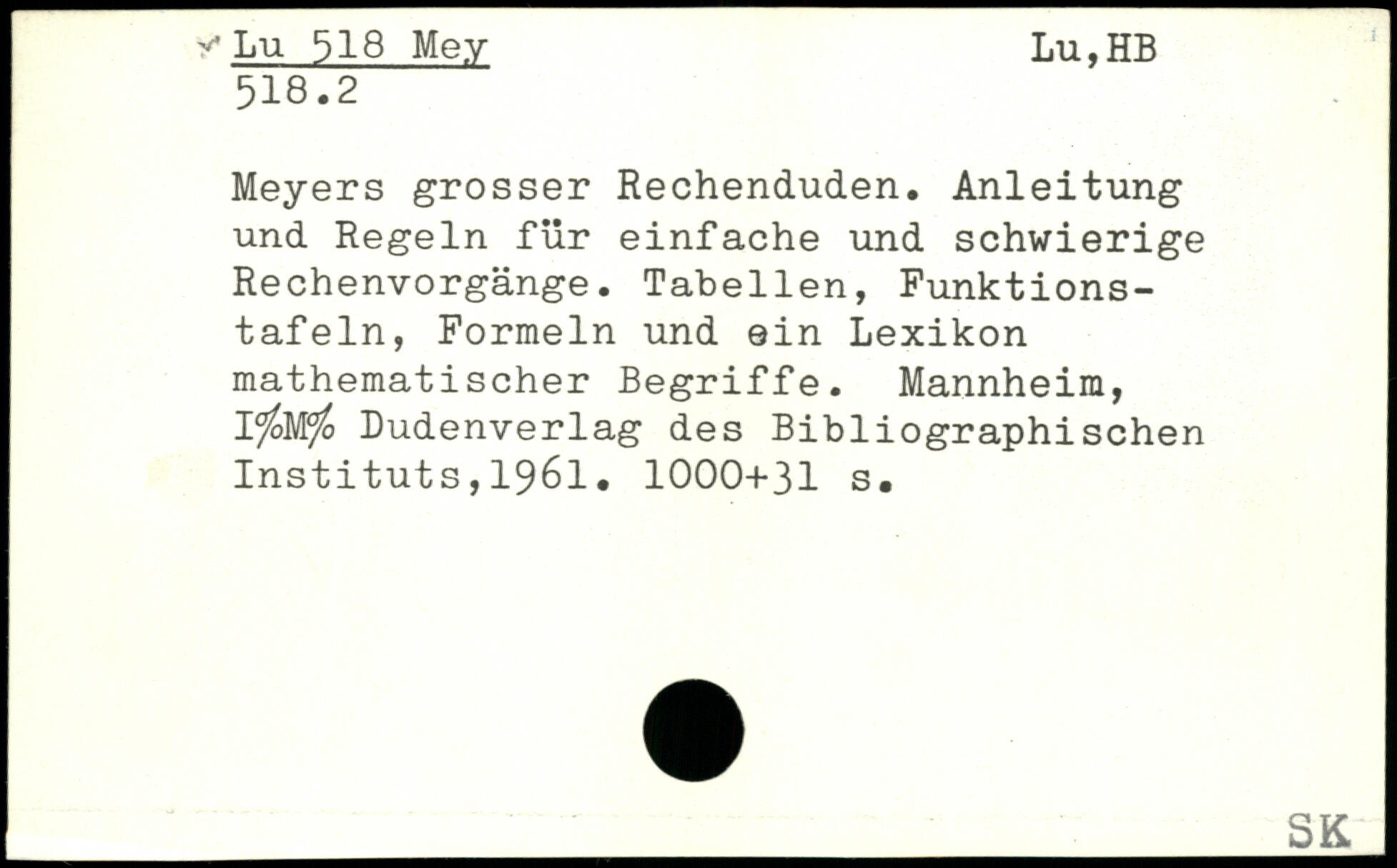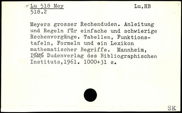 Meyers grosser Rechenduden. Anleitung und Regeln für einfache und schwierige Rechenvorgänge. Tabellen, Punktionstafeln, Formeln und ein Lexikon mathematischer Begriffe. Mannheim, I^oW/o Dudenverlag des Bibliographischen Instituts,1961.