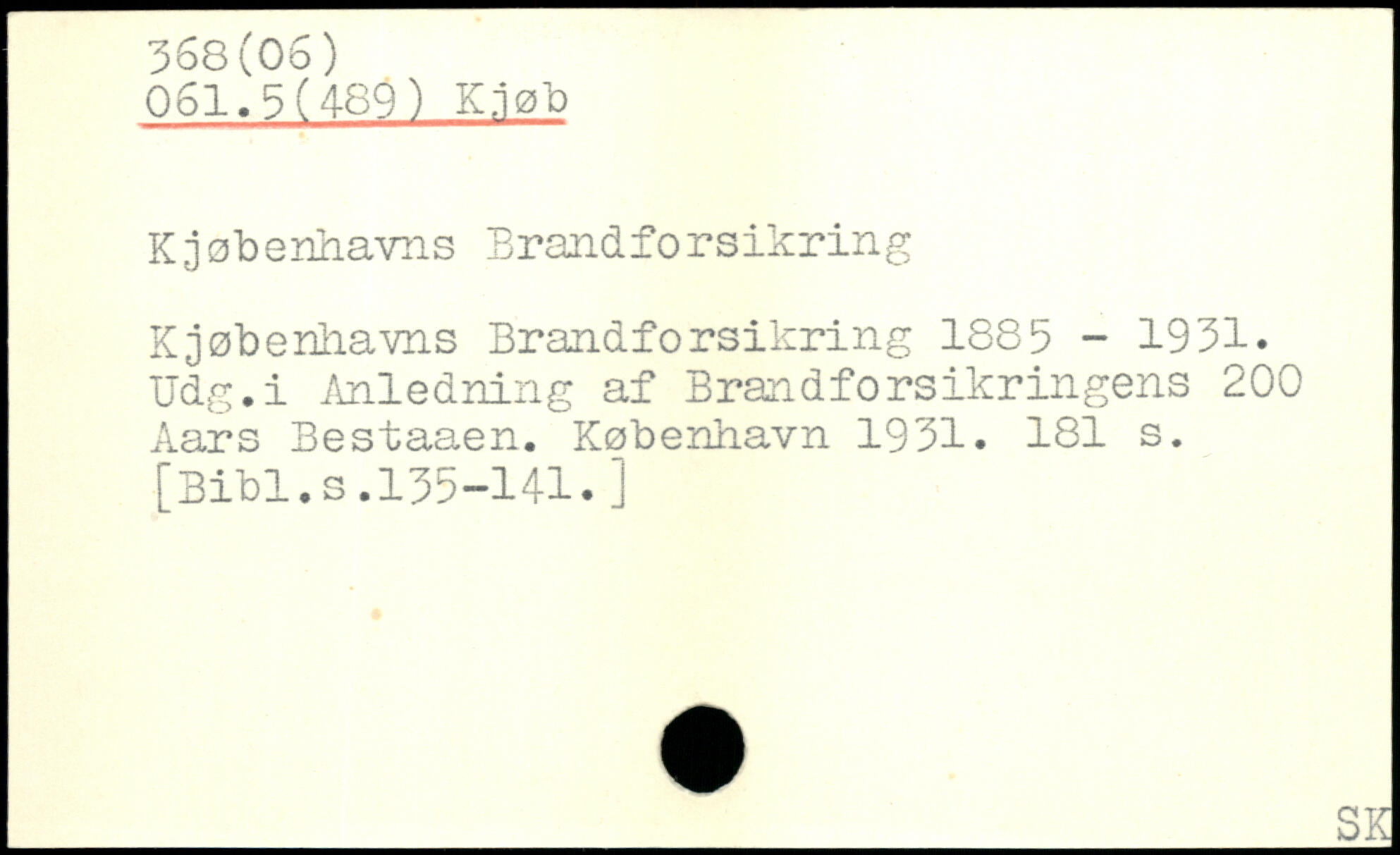 Kjøbenhavns Brandforsikring Kjøbenhavns Brandforsikring 1885 - 1931. Udg.i Anledning af Brandforsikringens 200 Aars Bestaaen.