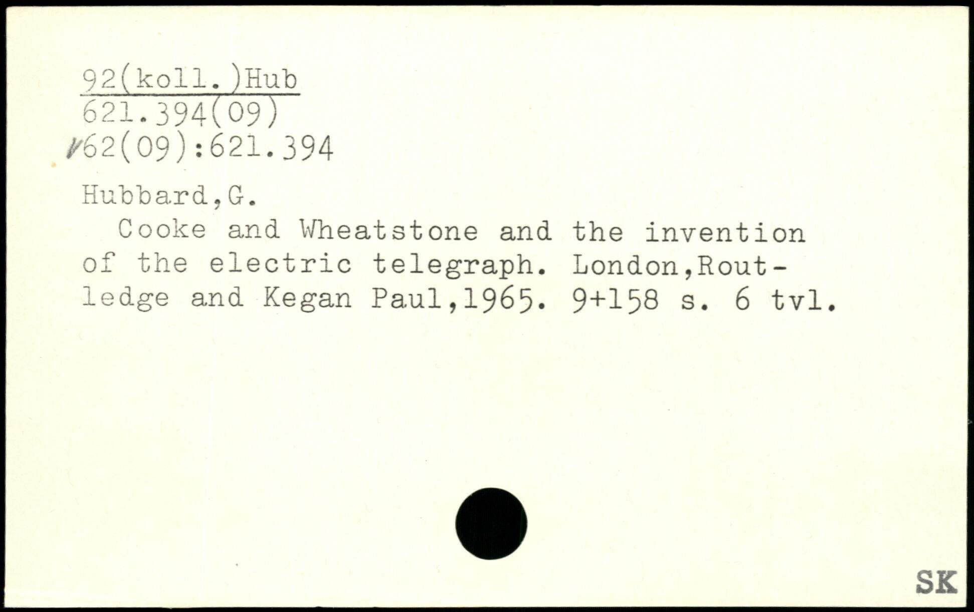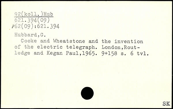 Cooke and Wheatstone and the invention of the electric telegraph. LondonjRout-ledge and Kegan Pa.ul,1965.