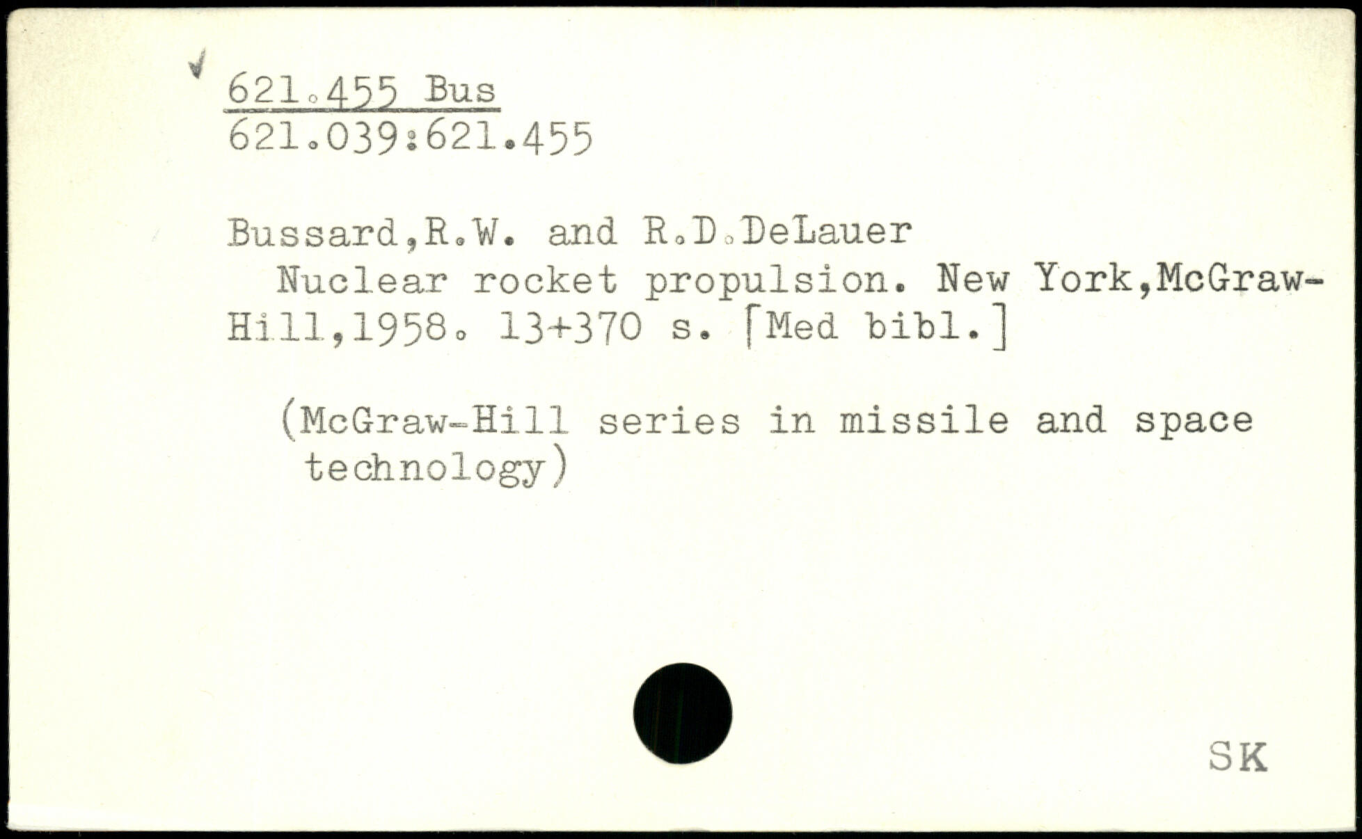Bussard,RaV. and RoD.DeLauer Nuclear rocket propulsion.