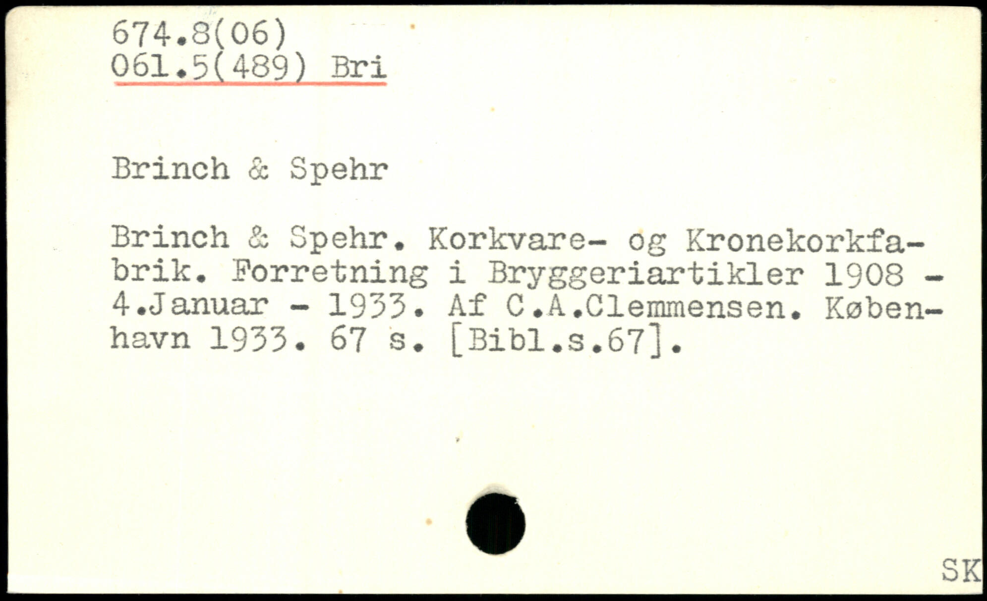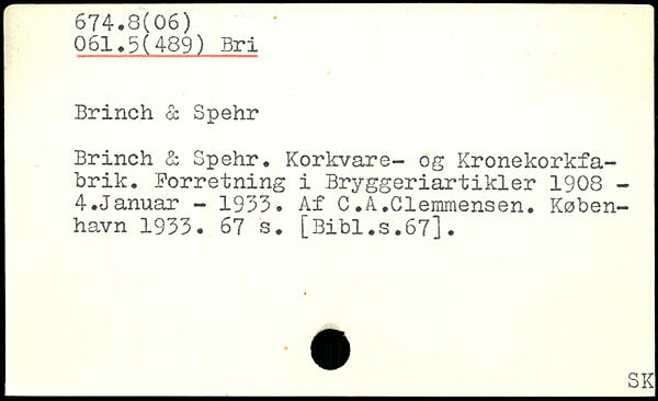 Brinch 6c Spehr Brinch 6c Spehr, Korkvare- og Kronekorkfa-brik, Forretning i Bryggeriartikler 1908 -4.Januar - 1933. Af C .A.denimens en