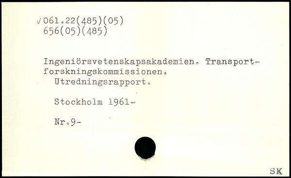 Ingeniörsvetenskapsakademien, Transport-forskningskommissioneno Utredningsrapport