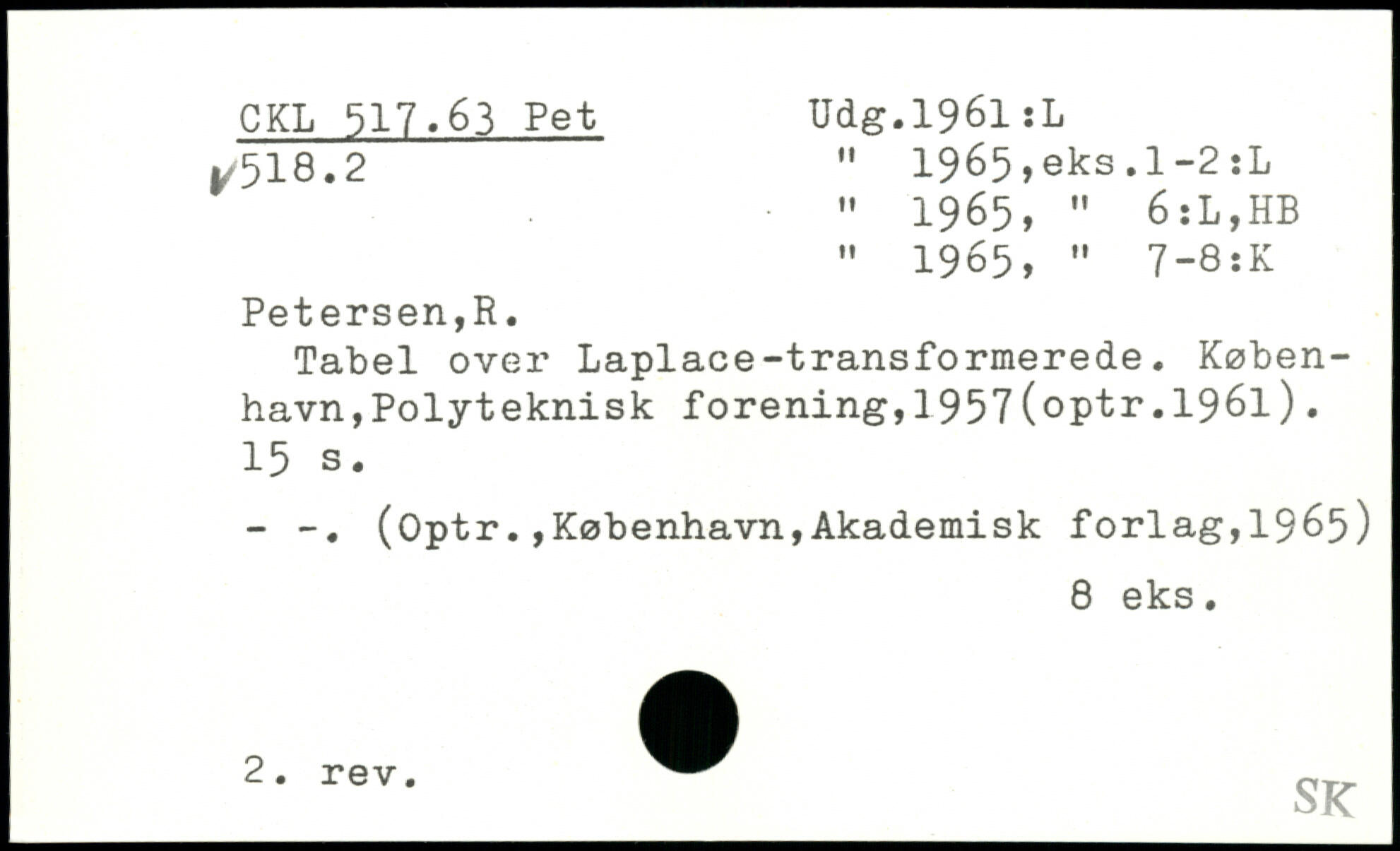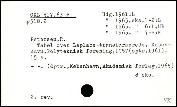 " 1965, " 6:L,HB " 1965, " 7-8:K Petersen,R. Tabel over Laplace-transformerede.