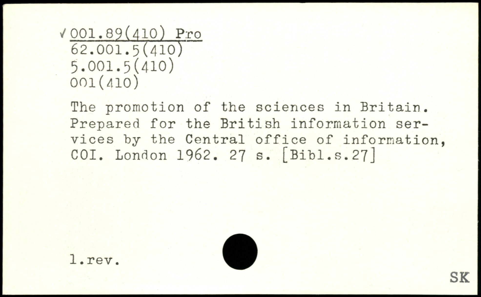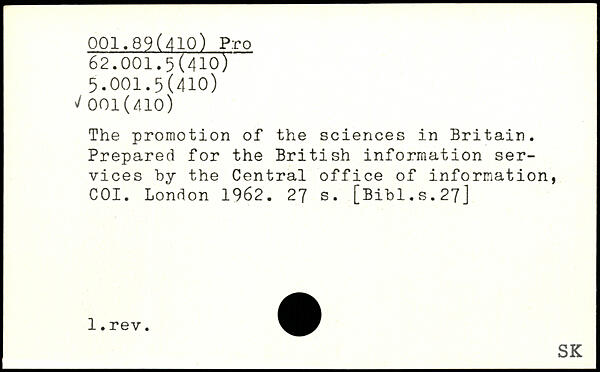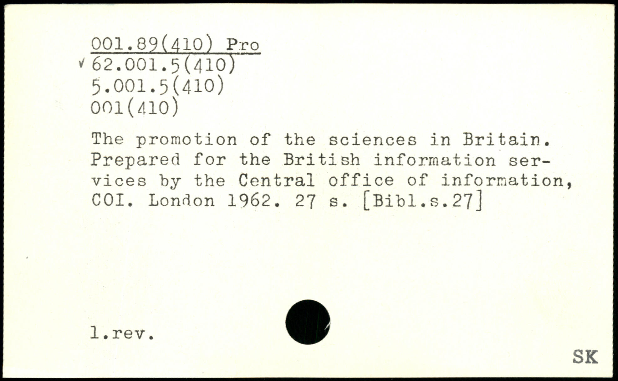The promotion of the sciences in Britain. Prepared for the British information services by the Central office of information, COI.