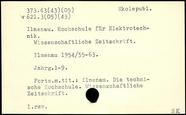 Ilmenau. Hochschule für Elektrotechnik. Wissenschaftliche Zeitschrift. Ilmenau 1954/55~63, Jahrg.1-9. Forts.m.tit.: Ilmenau. Die technische Hochschule. W^senschaftliehe Zeitschrift. l.rev.