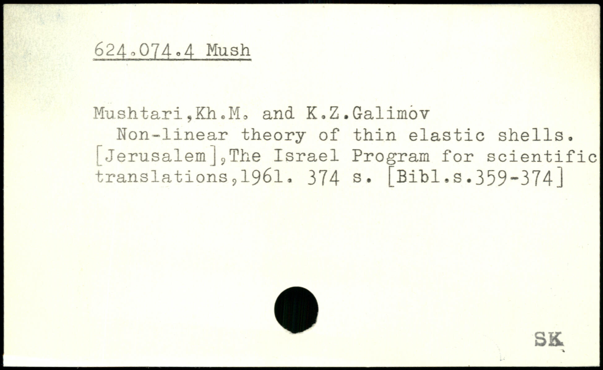 Mushtari,Kh.M, and K.Z.Galimov Non-linear theory of thin elastic shells. [Jerusalem]sThe Israel Program for scientific translations?1961.