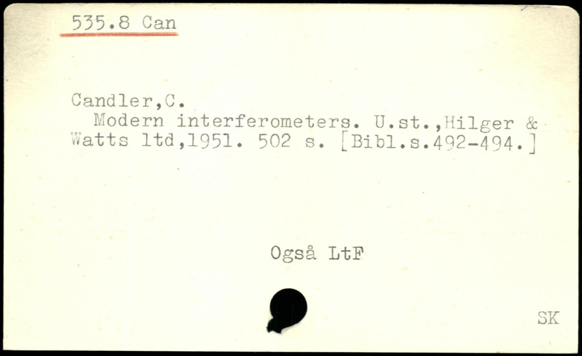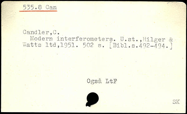 Modern interferometers. U.st.,Hilger & Watts ltd,1951.