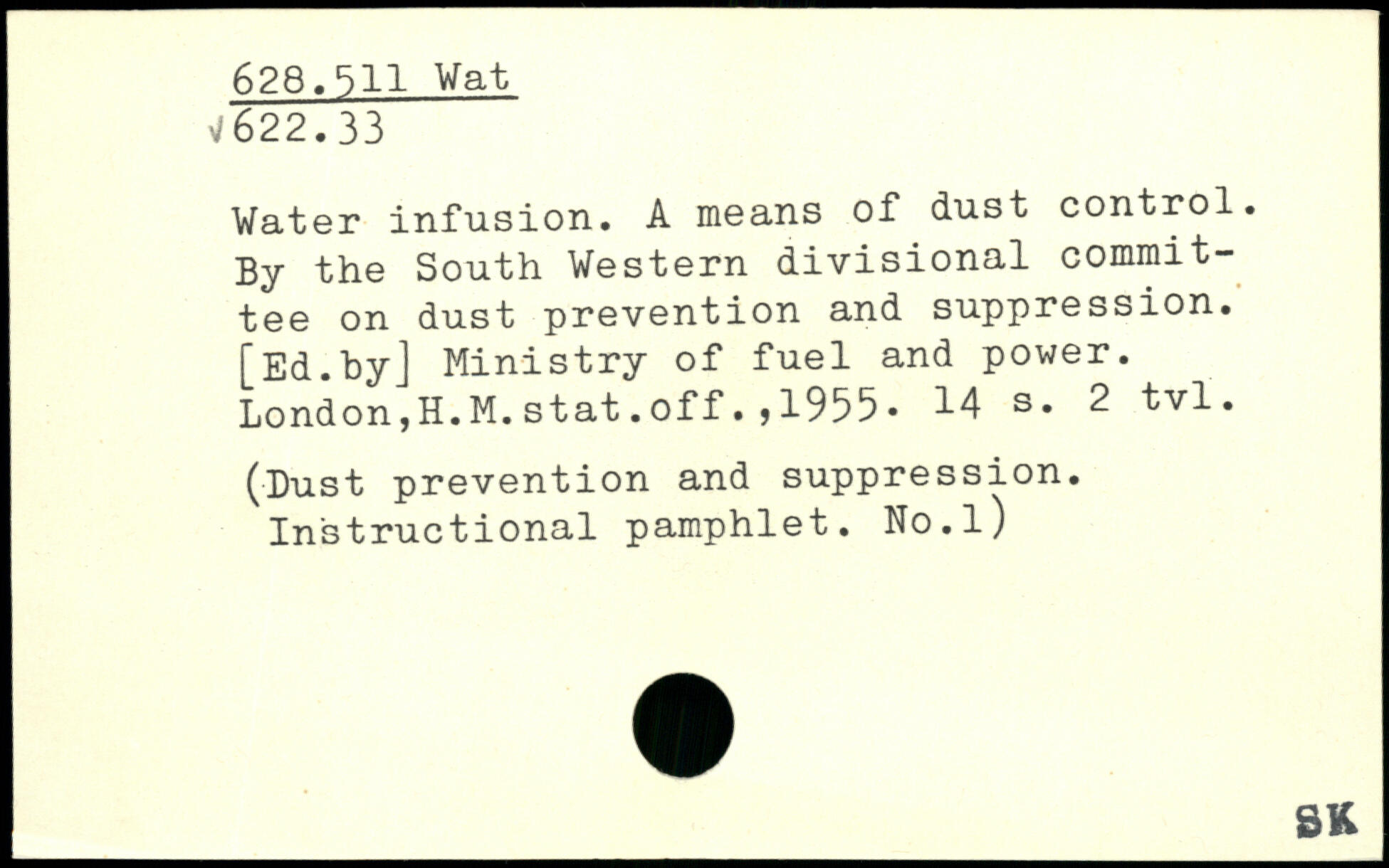 Water infusion. A means of dust control. By the South Western divisional committee on dust prevention and suppression.