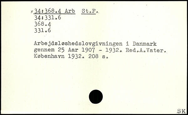 Arbejdsløshedslovgivningen i Danmark gennem 25 Aar 1907 - 1932. Red.A.Vater.
