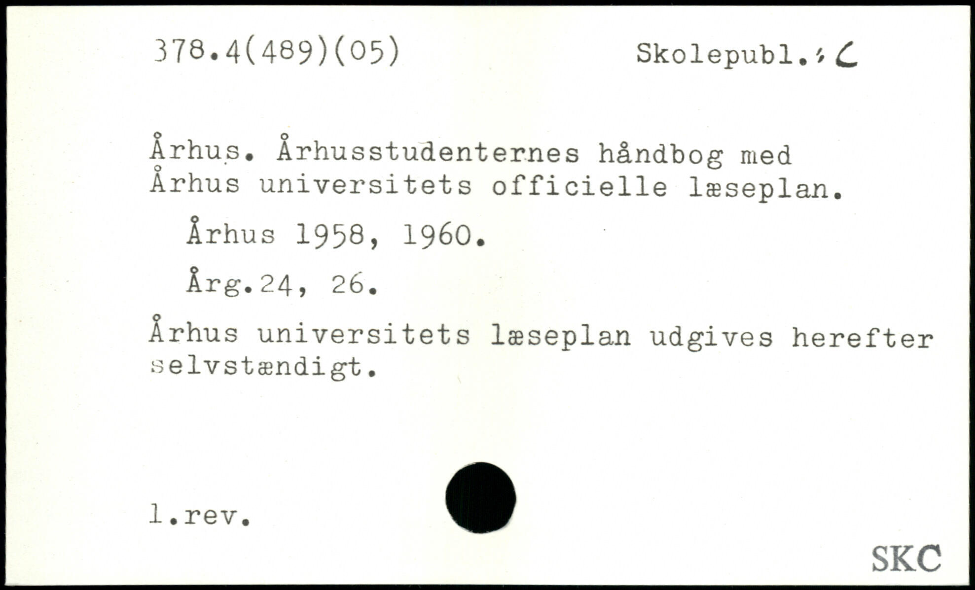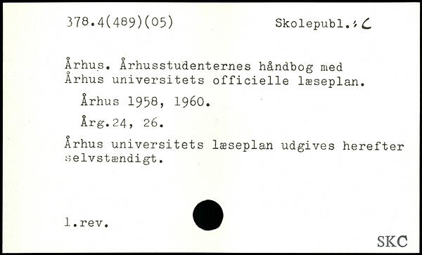 Århus. Århusstudenternes håndbog med Århus universitets officielle læseplan. Århus 1958, 1960. Årg.24, 26. Århus universitets læseplan udgives herefter selvstændigt.