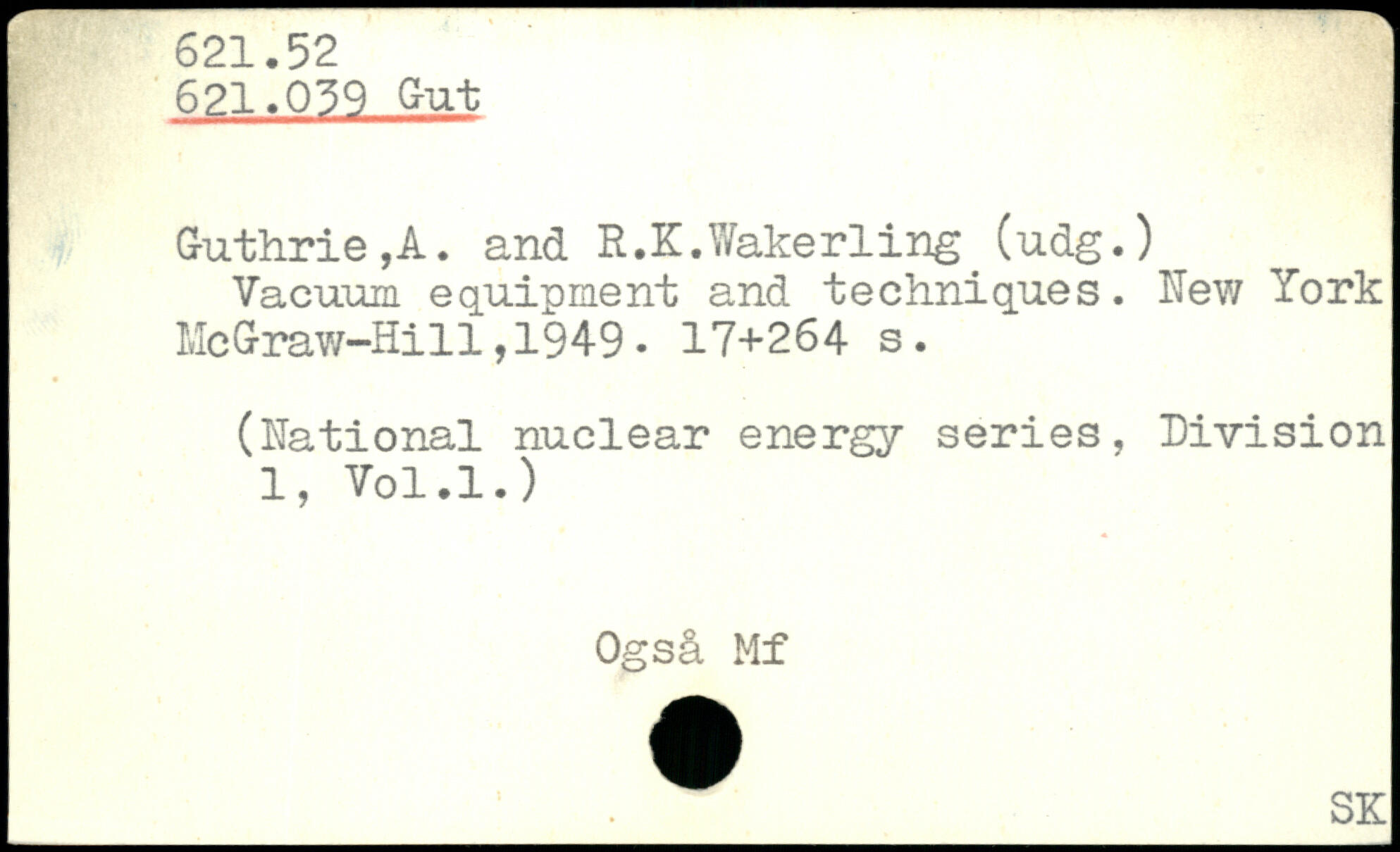 Vacuum equipment and techniques, hew York McGraw-Hill,1949.