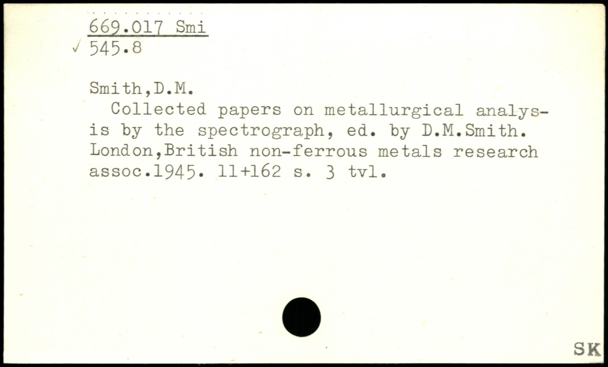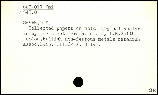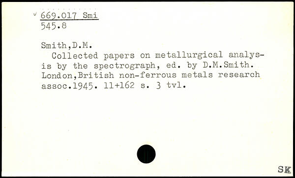 Collected papers on metallurgical analysis by the spectrograph, ed. by D.M.Smith. London,British non-ferrous metals research assoc.1945