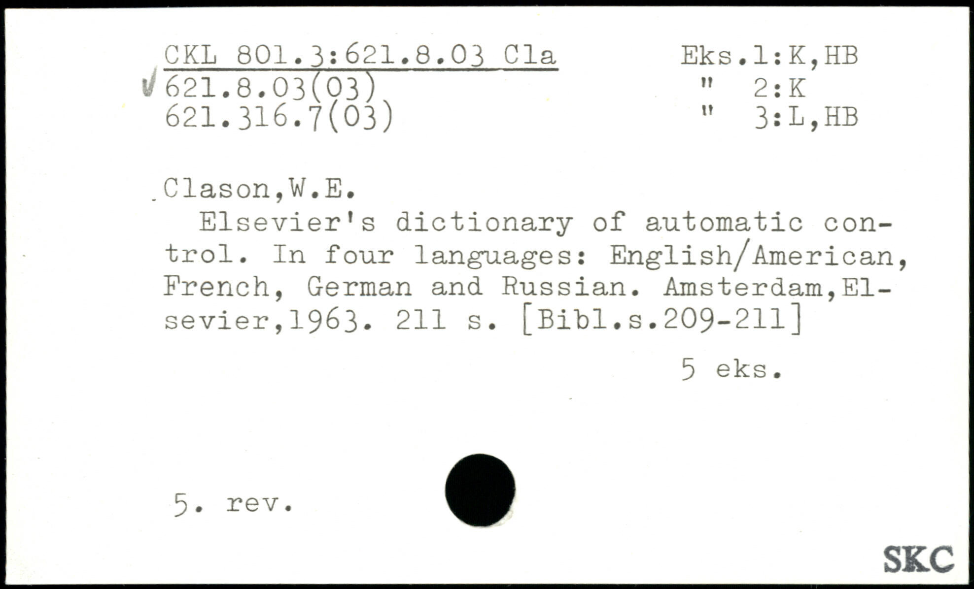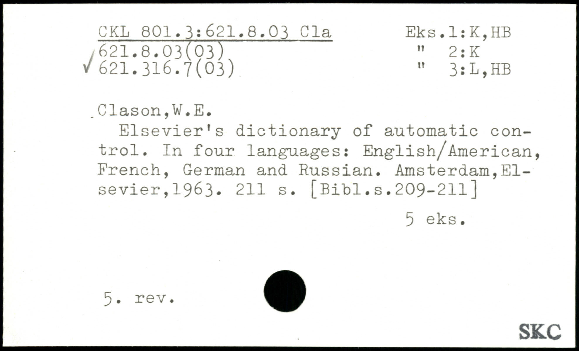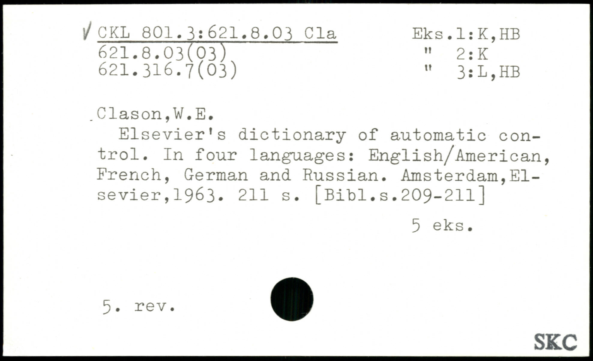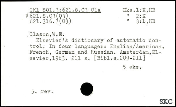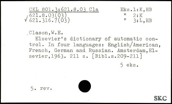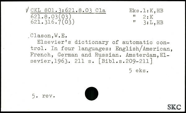 Elsevier’s dictionary of automatic control. In four languages: English/American, French, German and Russian.