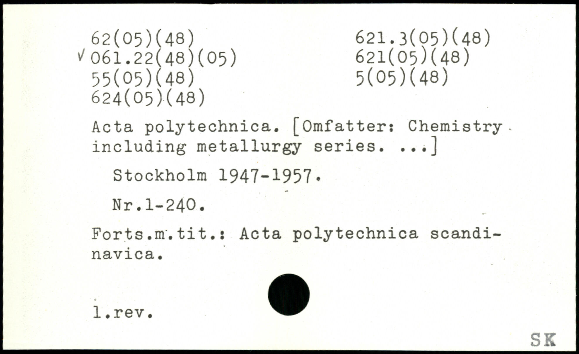 Acta polytechnica. [Omfatter: Chemistry-including metallurgy series. ...]