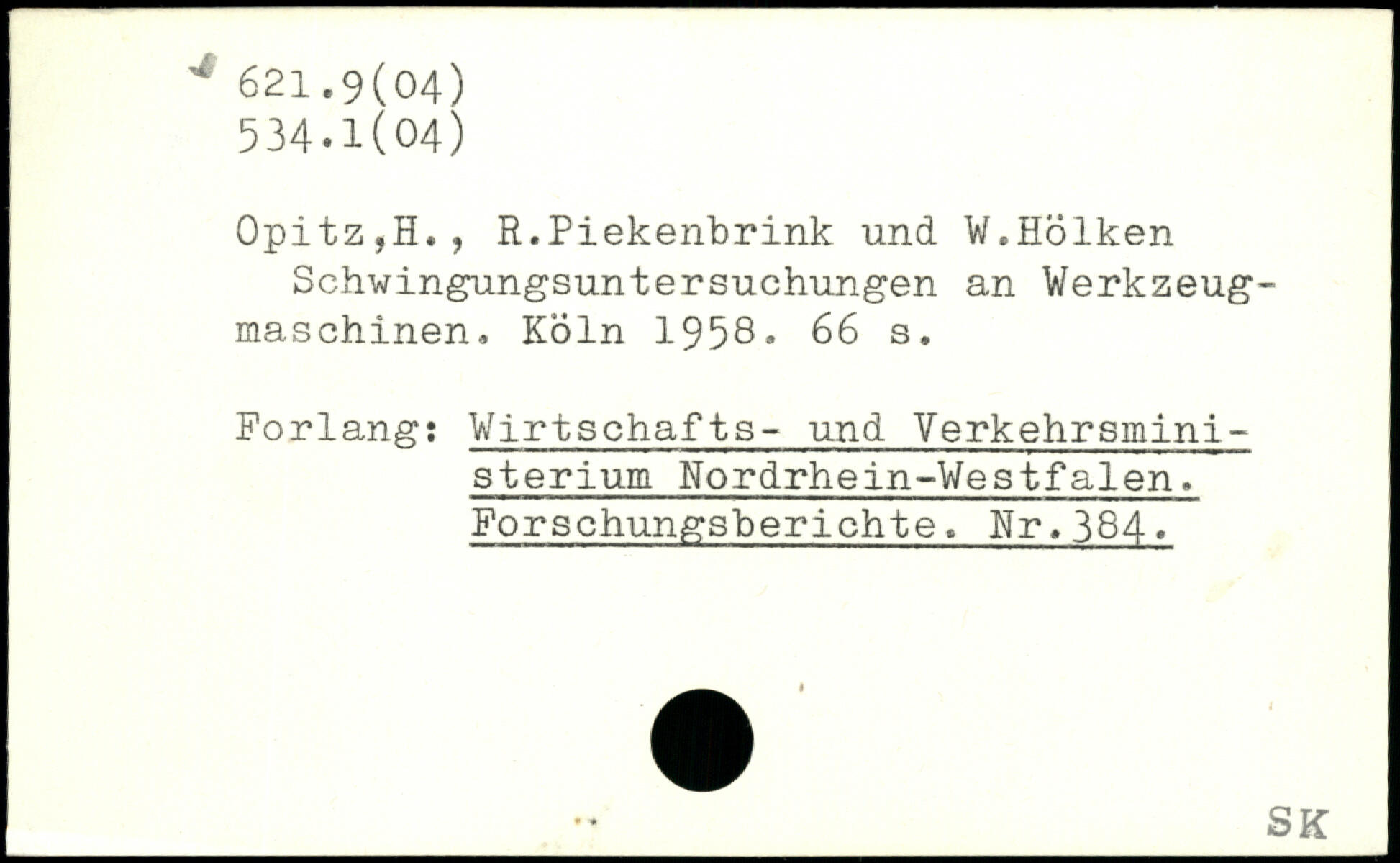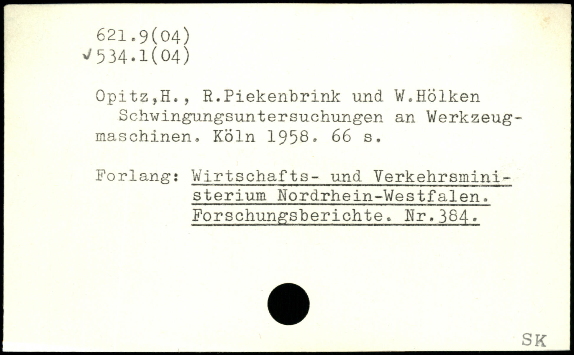 Opitz,H., R.Piekenbrink und ¥.Holken Schwingungsuntersuchungen an Werkzeugmaschinen