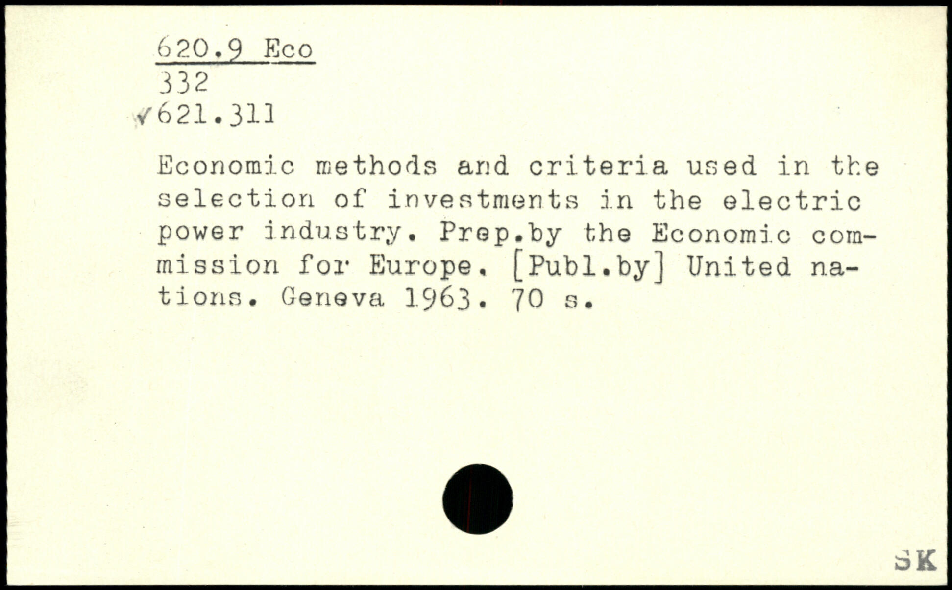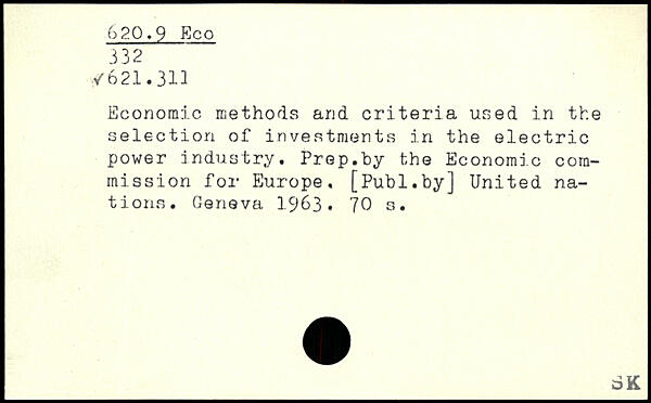 Economic methods and criteria used in the selection of investments in the electric power industry. Prep.by the Economic commission for Europe, f