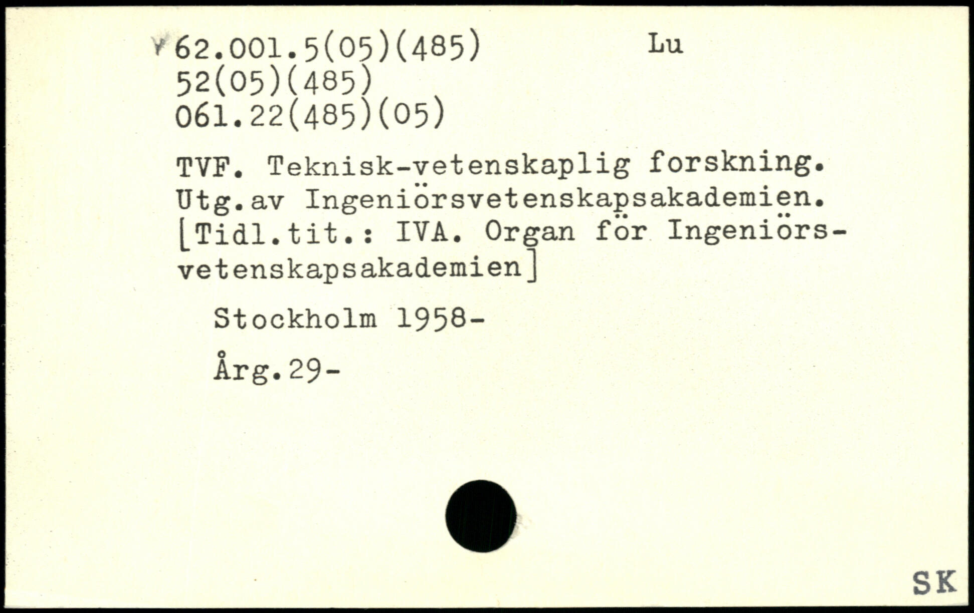 TVF. Teknisk-vetenskaplig forskning. Utg.av Ingeniorsvetenskapsakademien. [Tidl.tit.: IVA. Organ för Ingeniörs-vetenskapsakademien]