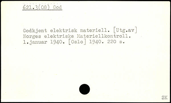 Godkjent elektrisk materiell. [Utg.av] Norges elektriske Materiellkontroll. 1.januar 1940, [Oslo] 1940.