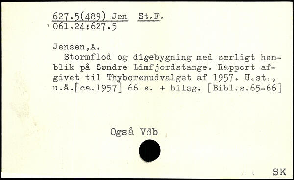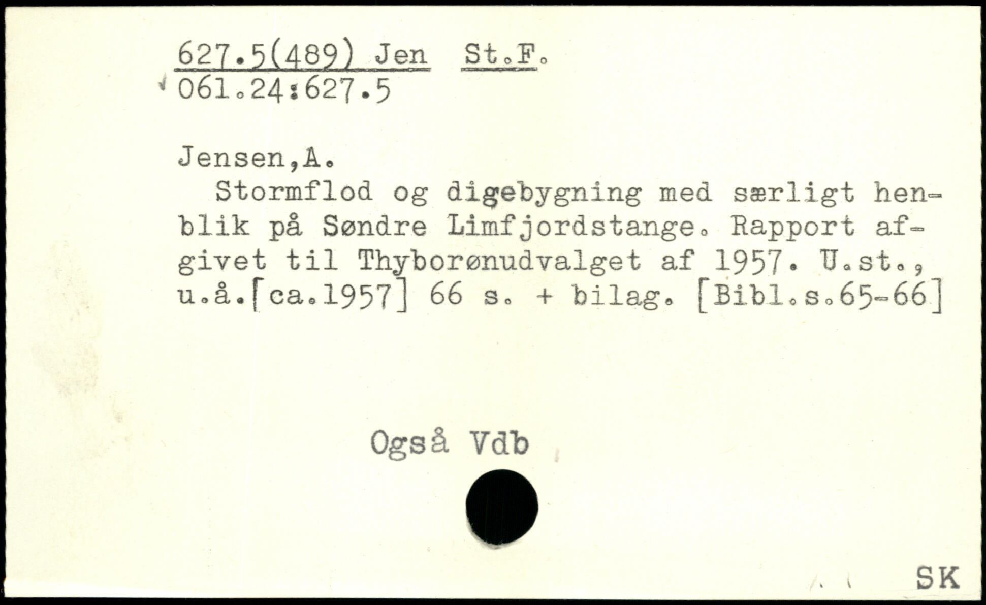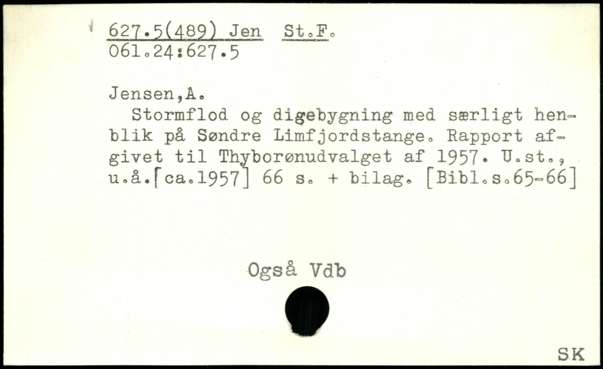 Stormflod og digebygning med særligt henblik på Søndre Limfjordstange, Rapport afgivet til Thyborønudvalget af 1957, U.st<,9 n,å.fca. 1957]