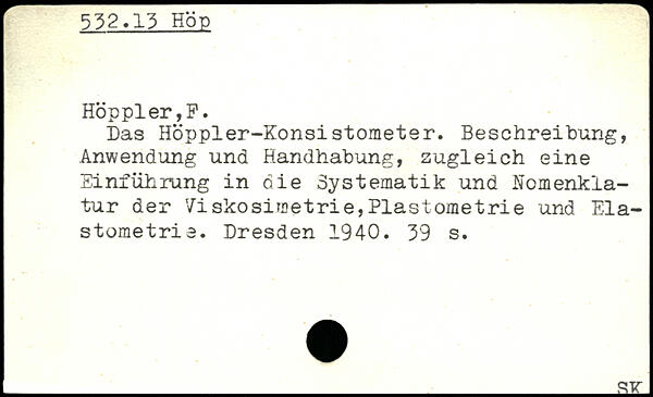 Das Höppler-Konsistometer. Beschreibung, Anwendung und Handhabung, zugleich eine Einführung in die Systematik und Nomenklatur der 7iskosimetrie,Plastometrie und Ela-stometrie. Dresden 1940.