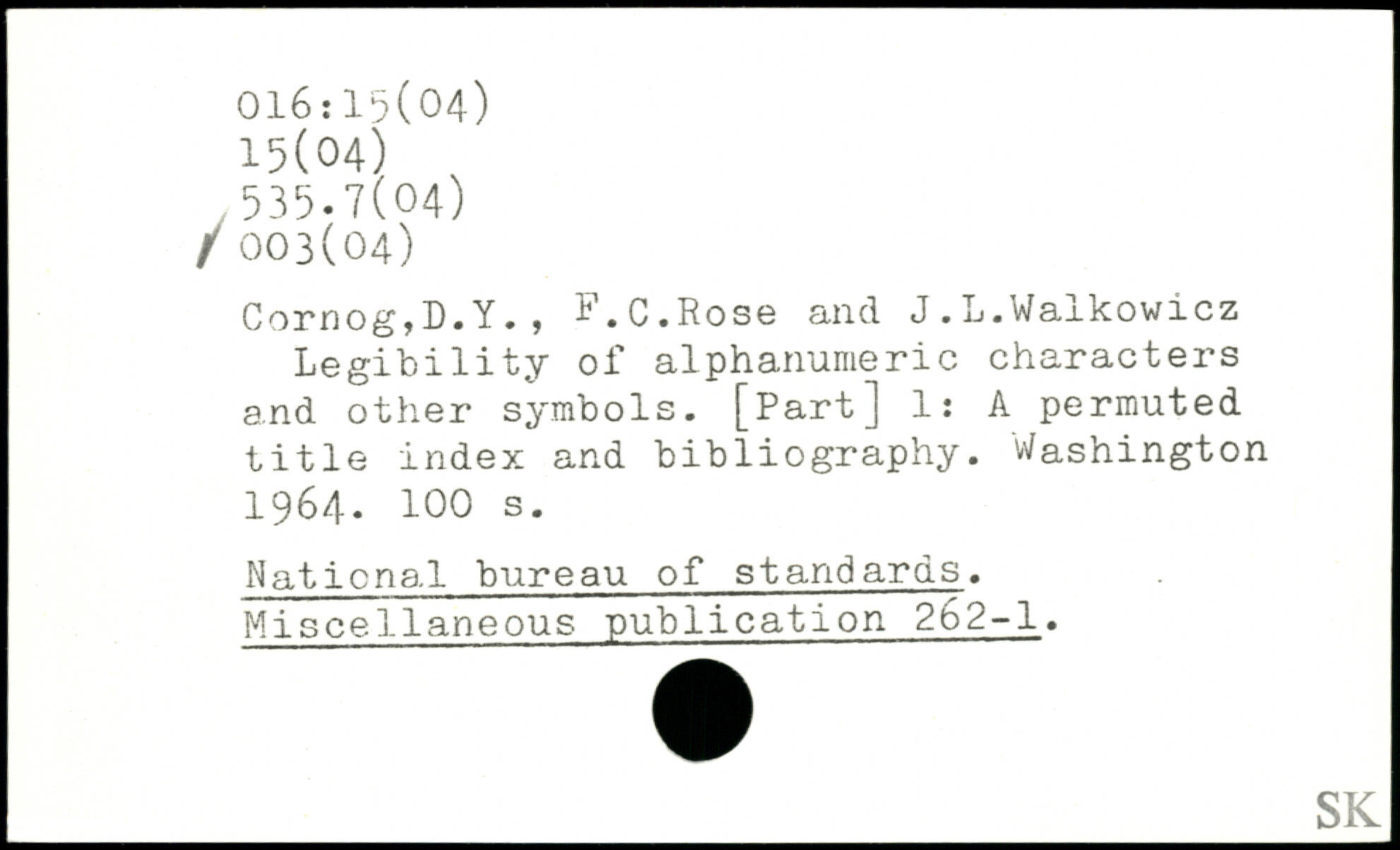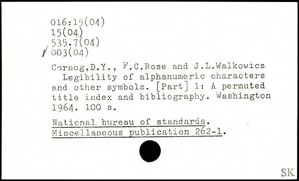 Cornog,D.Y. <, i .C.Ross ancl J .L.Wax k o w i c z Legibility of alphanumeric characters and other symbols. [Part] 1: A permuted title index and bibliography.
