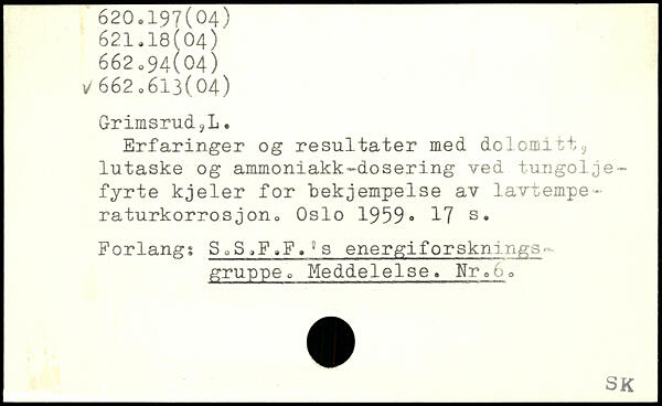 Grimsrud. jL. Erfaringer og resultater med dolomitt9 lutaske og ammoniakk,dosering ved tungolje-fyrte kjeler for lekjempelse av lavtempe-raturkorrosjon. Oslo 1959