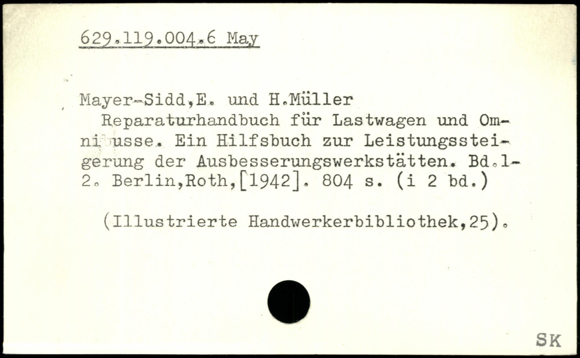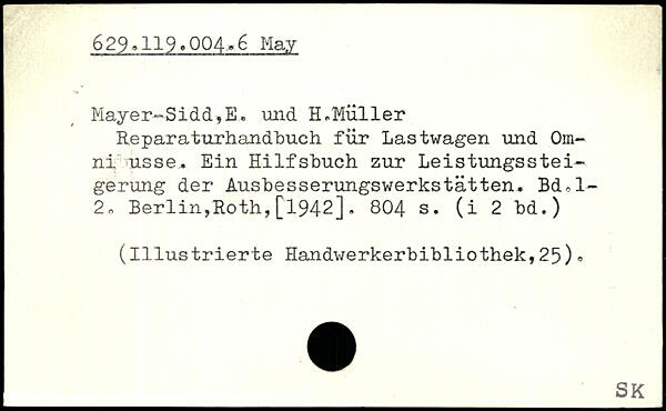 Mayer—Sidd,E. und H,Müller Reparaturhandbuch für Lastwagen und Omni nsse.. Ein Hilfsbuch zur Leistungssteigerung der Ausbesserungswerkstätten. Bd,l-2o