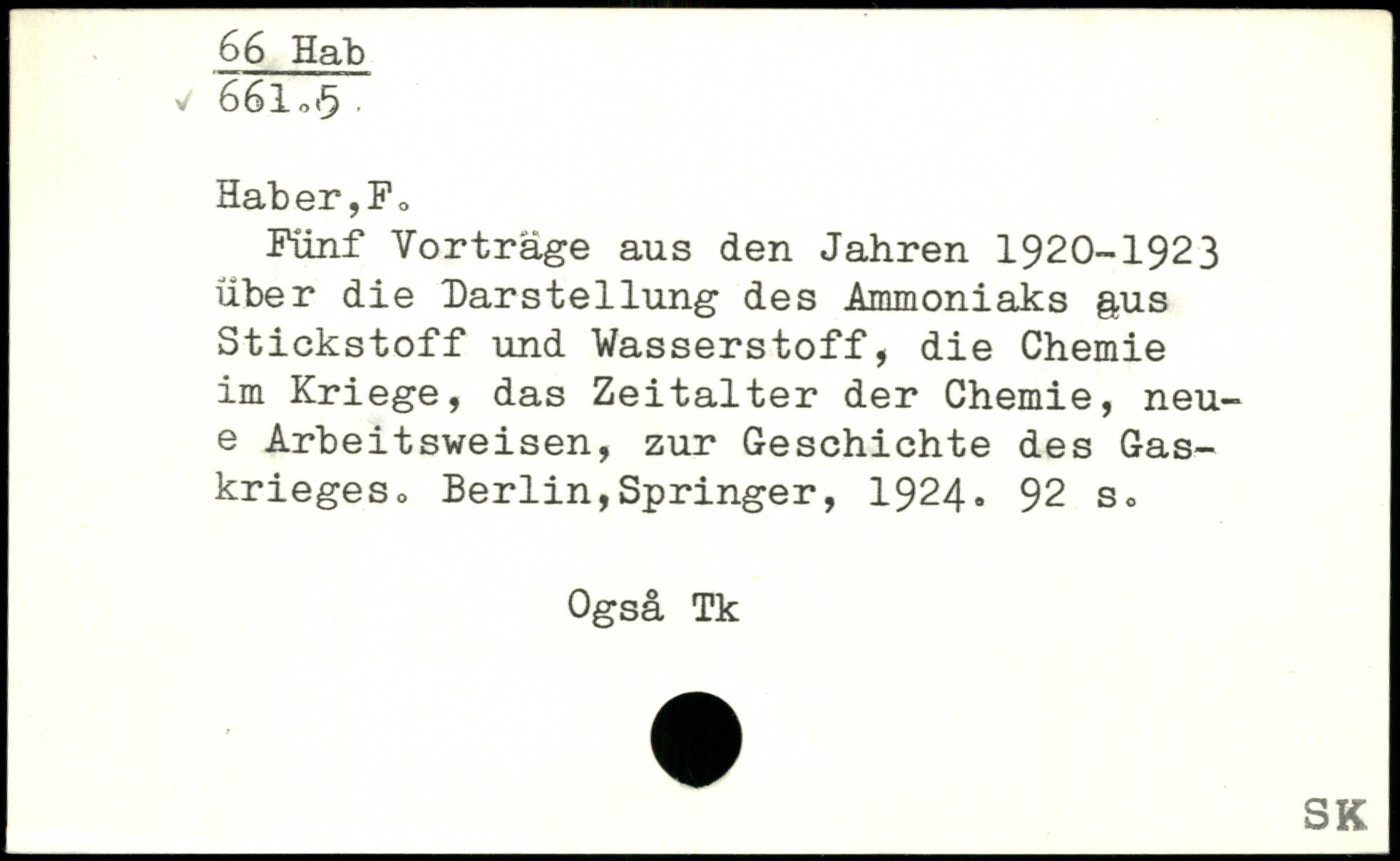 Fünf Vorträge aus den Jahren 1920-1923 über die Darstellung des Ammoniaks g,us Stickstoff und Wasserstoff, die Chemie im Kriege, das Zeitalter der Chemie, neu-e Arbeitsweisen, zur