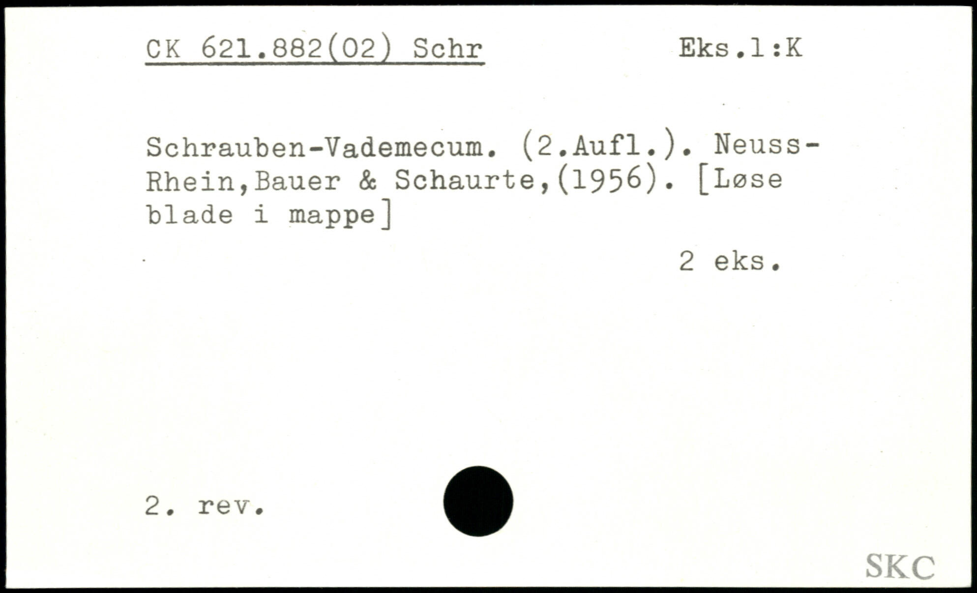 Schrauben-Vademecum. (2,Aufl.). Neuss-Rhein,Bauer & Schaurte,(1956).
