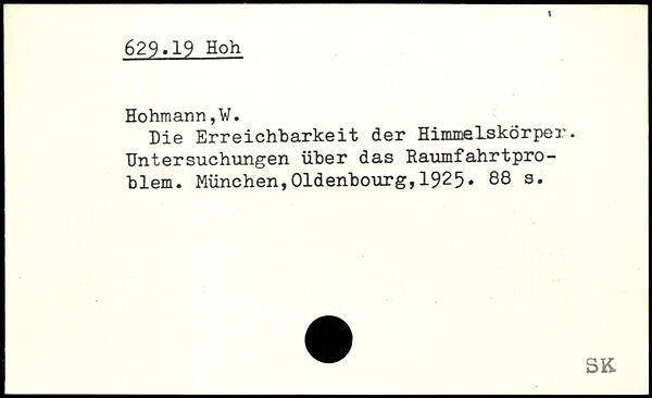 Die Erreichbarkeit der Himmelskörper. Untersuchungen über das Raumfahrtproblem.