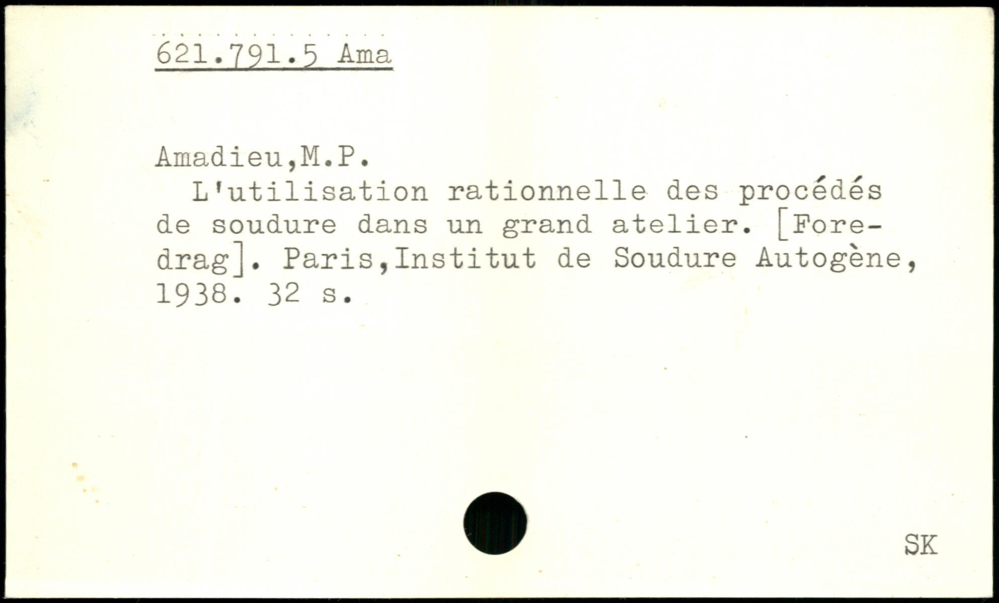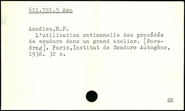 L’utilisation rationnelle des procédés de soudure dans un grand atelier. [Pore-drag]. Paris,Institut de Soudure Autogène, 1938.